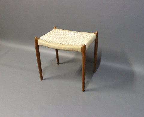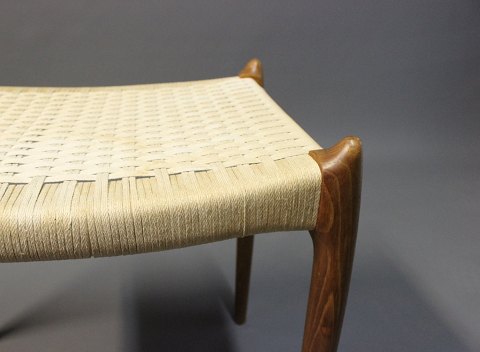 Skammel, model 80 A, i teak og hvid flet designet af N.O. Møller og produceret af J.L. Møller i 1960erne.