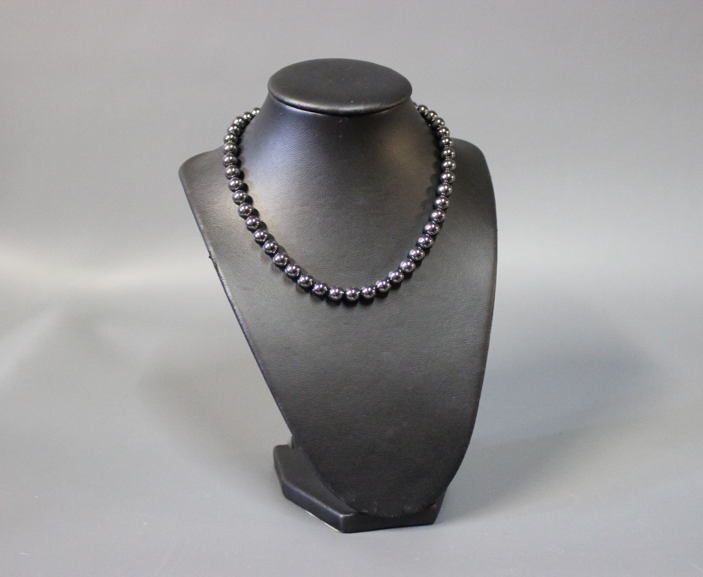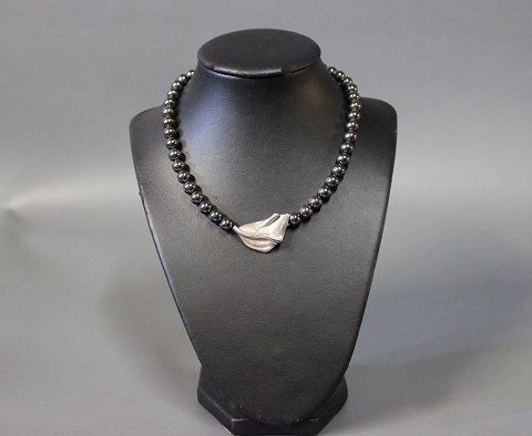 SoldHematite necklace with dark grey bloodstones and large 925 sterling Lock.