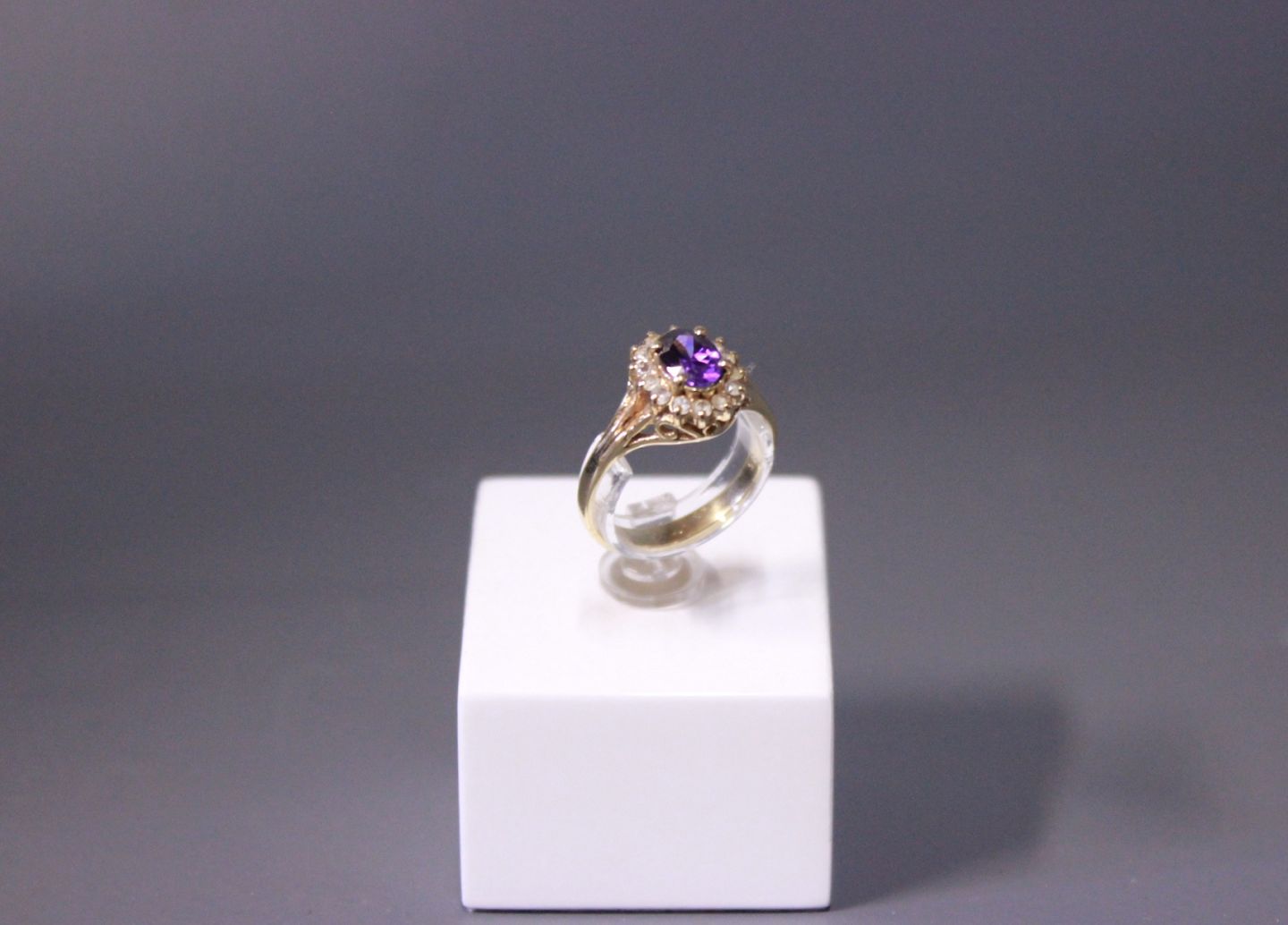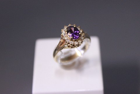 Ring i 14 kt. guld med ametyst og zirkoner.