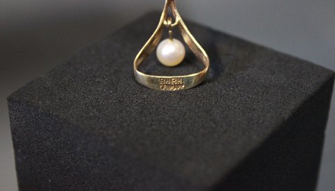 Pendant in 8 ct. gold with fine Little cultured Pearl, design by BH.