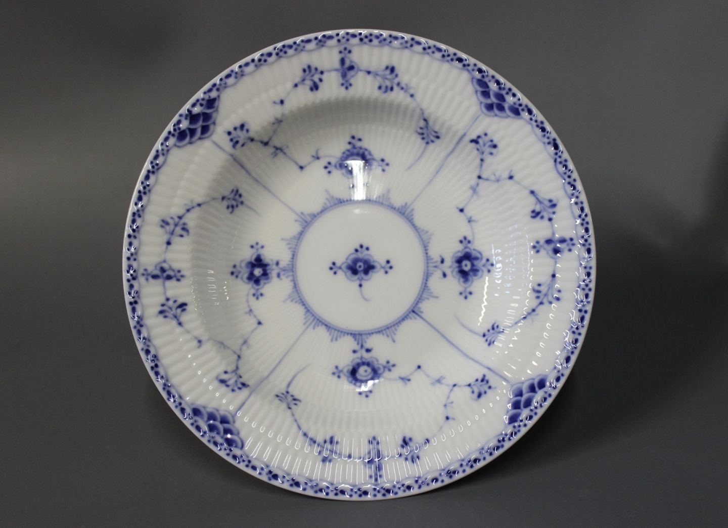 SolgtKgl. musselmalet halvblonde dyb tallerken, nr.: 1/566.