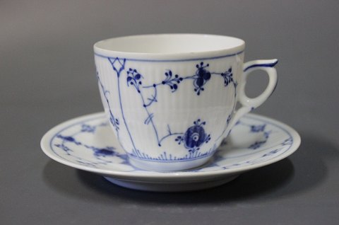 B&G musselmalet/blåmalet riflet kaffekop samt underkop, #102.
