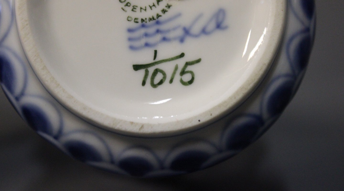 SolgtKgl. Musselmalet helblonde vase, #1/1015.