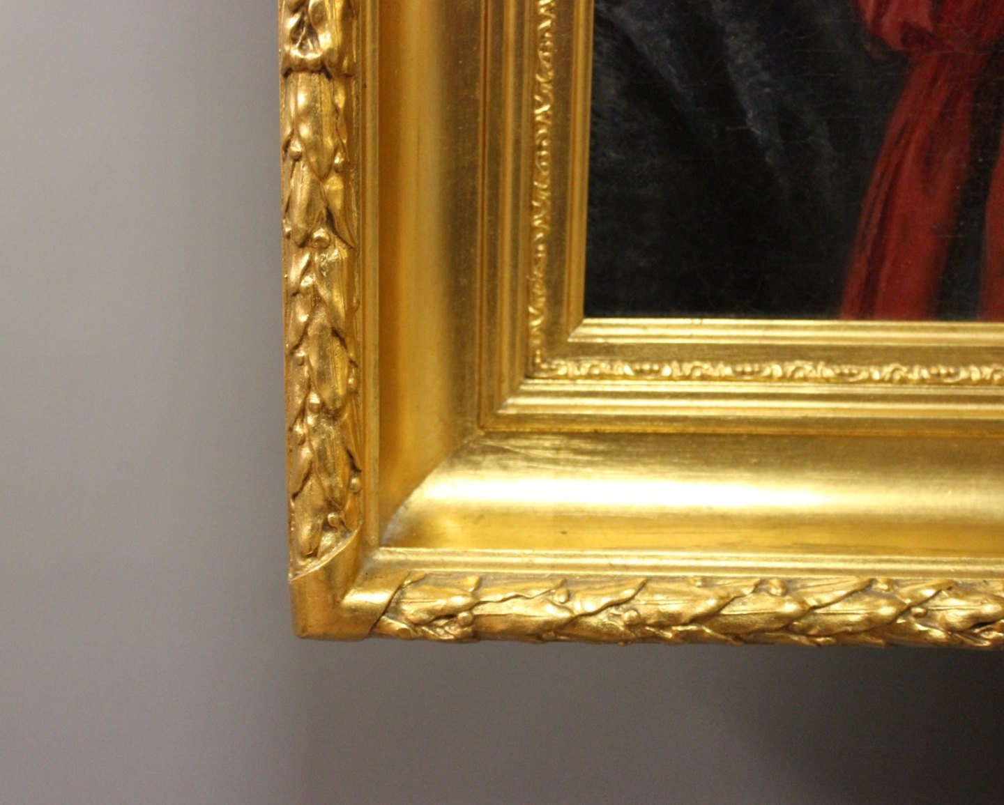 Antikt portrætbillede fra 1800 tallet, i træramme dekoreret med guldblad ukendt signatur, 1891.