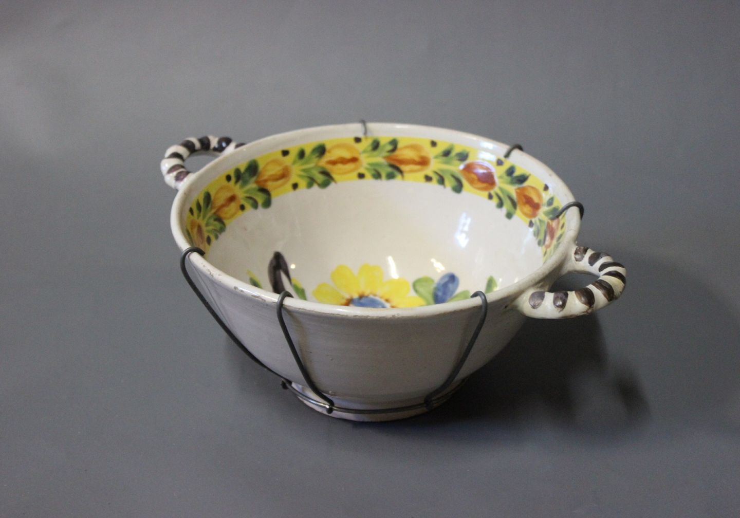 SolgtKellinghusen øreskål af Fajance fra 1700 tallet, dekoreret i gule farver.