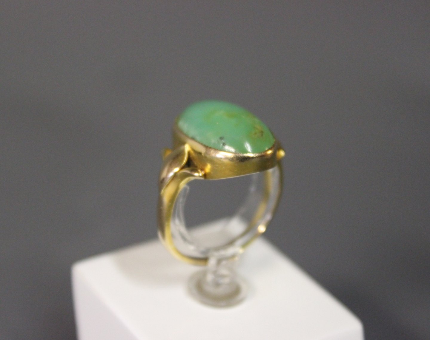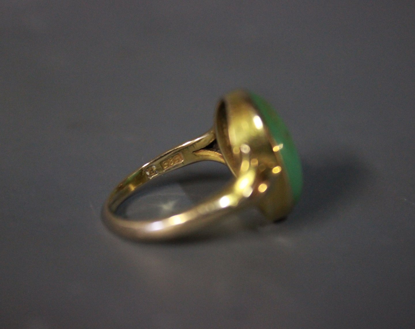 Sold14 ct. goldring with green stone.