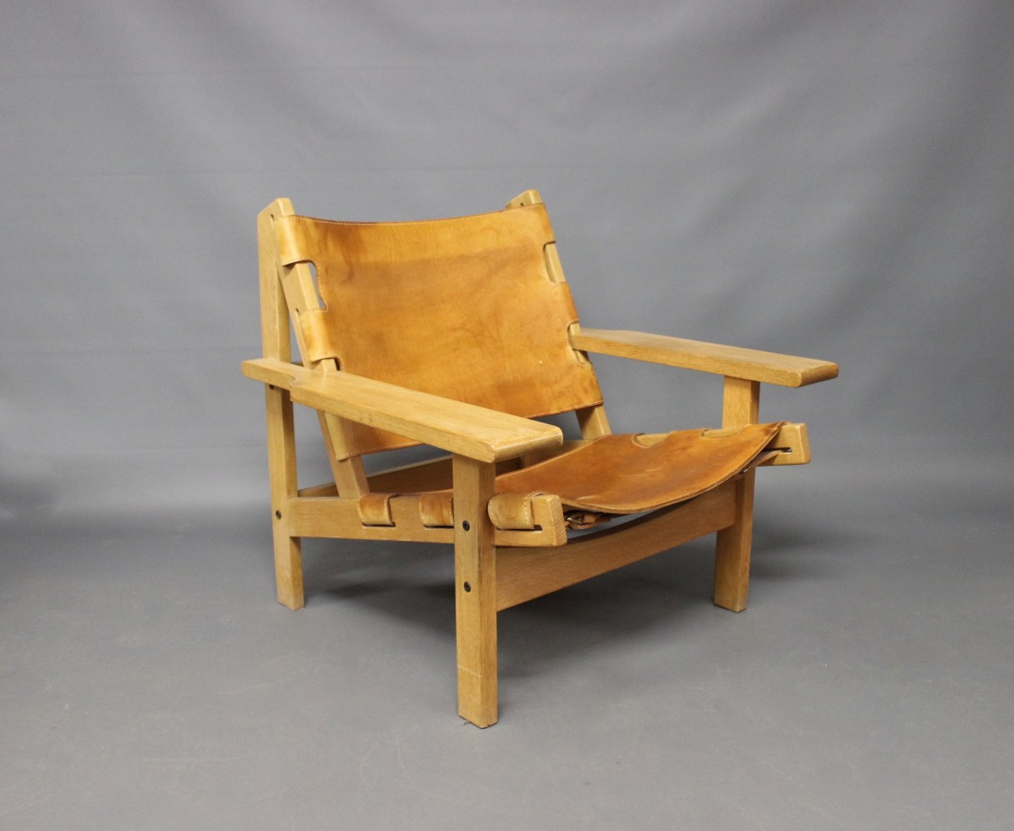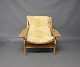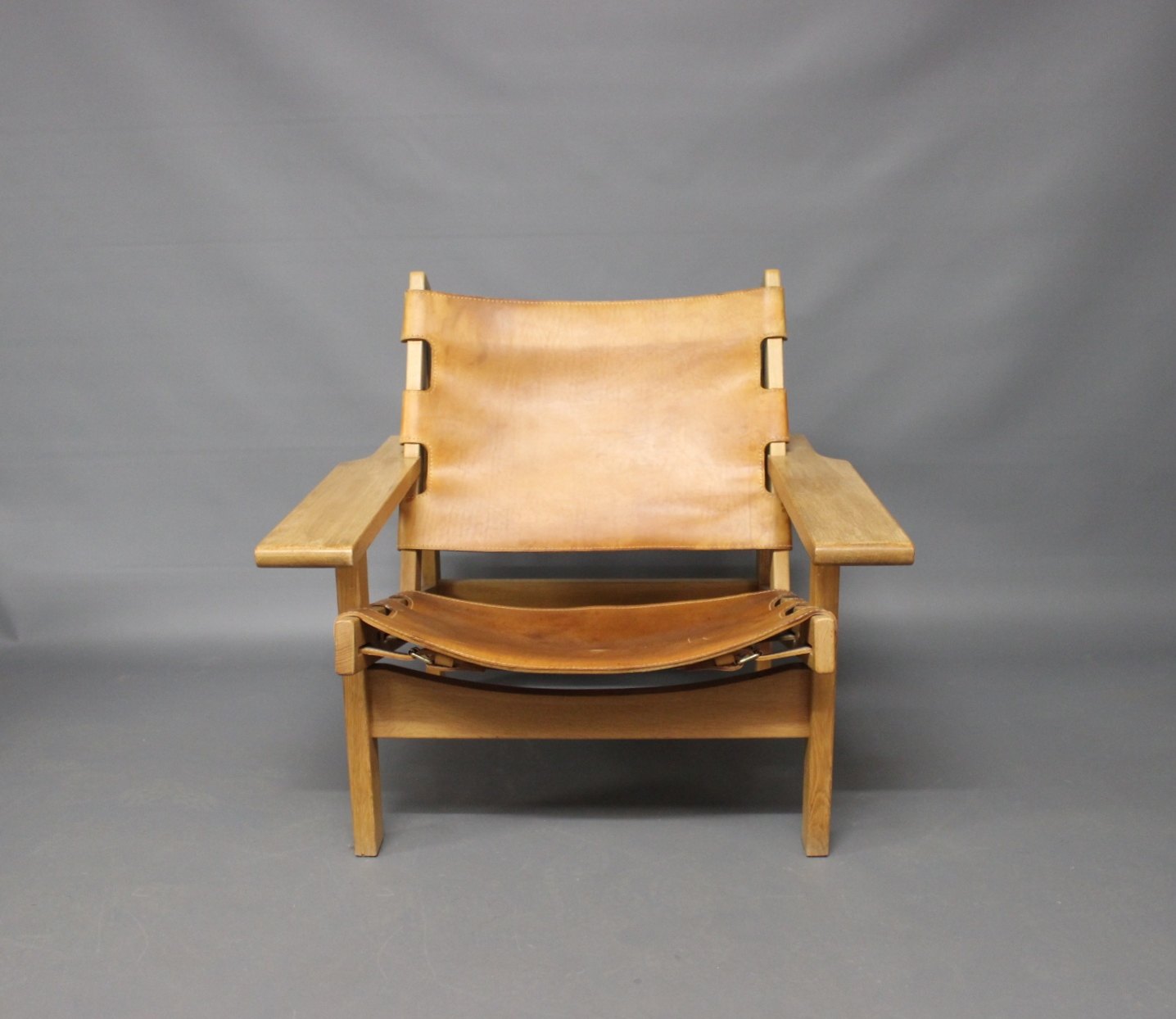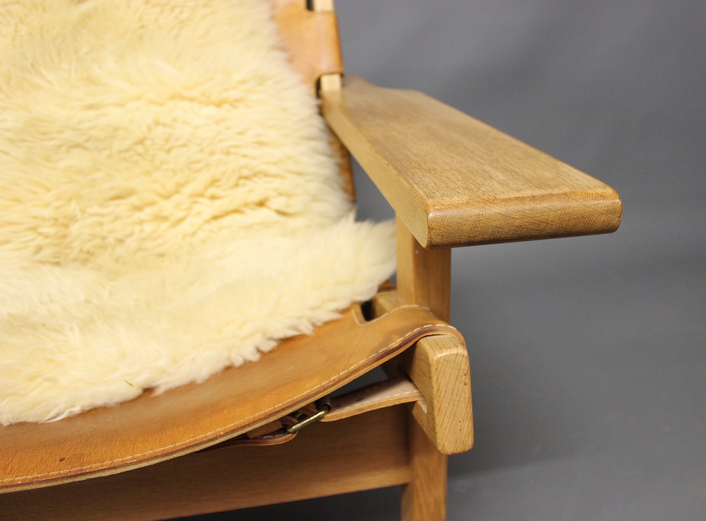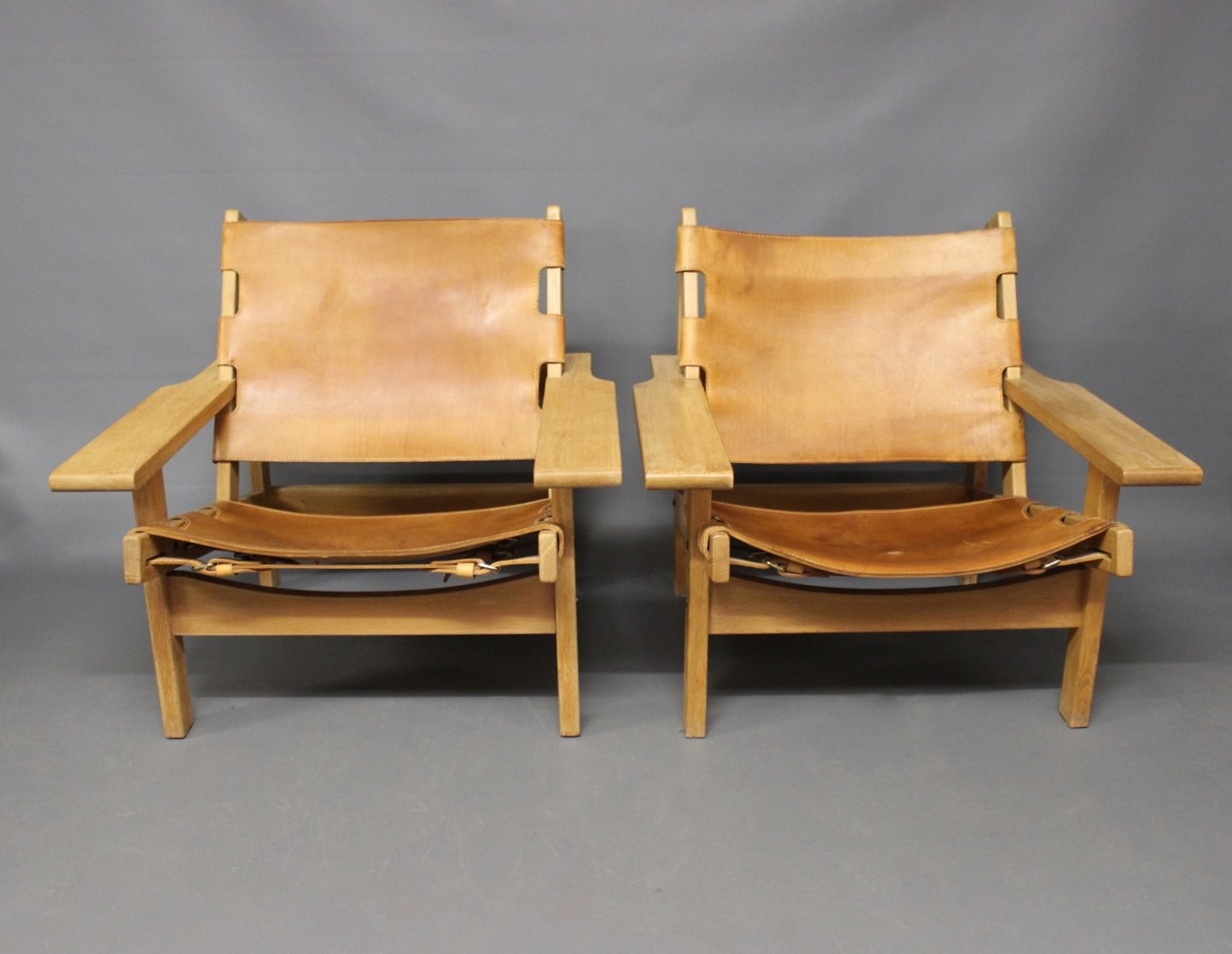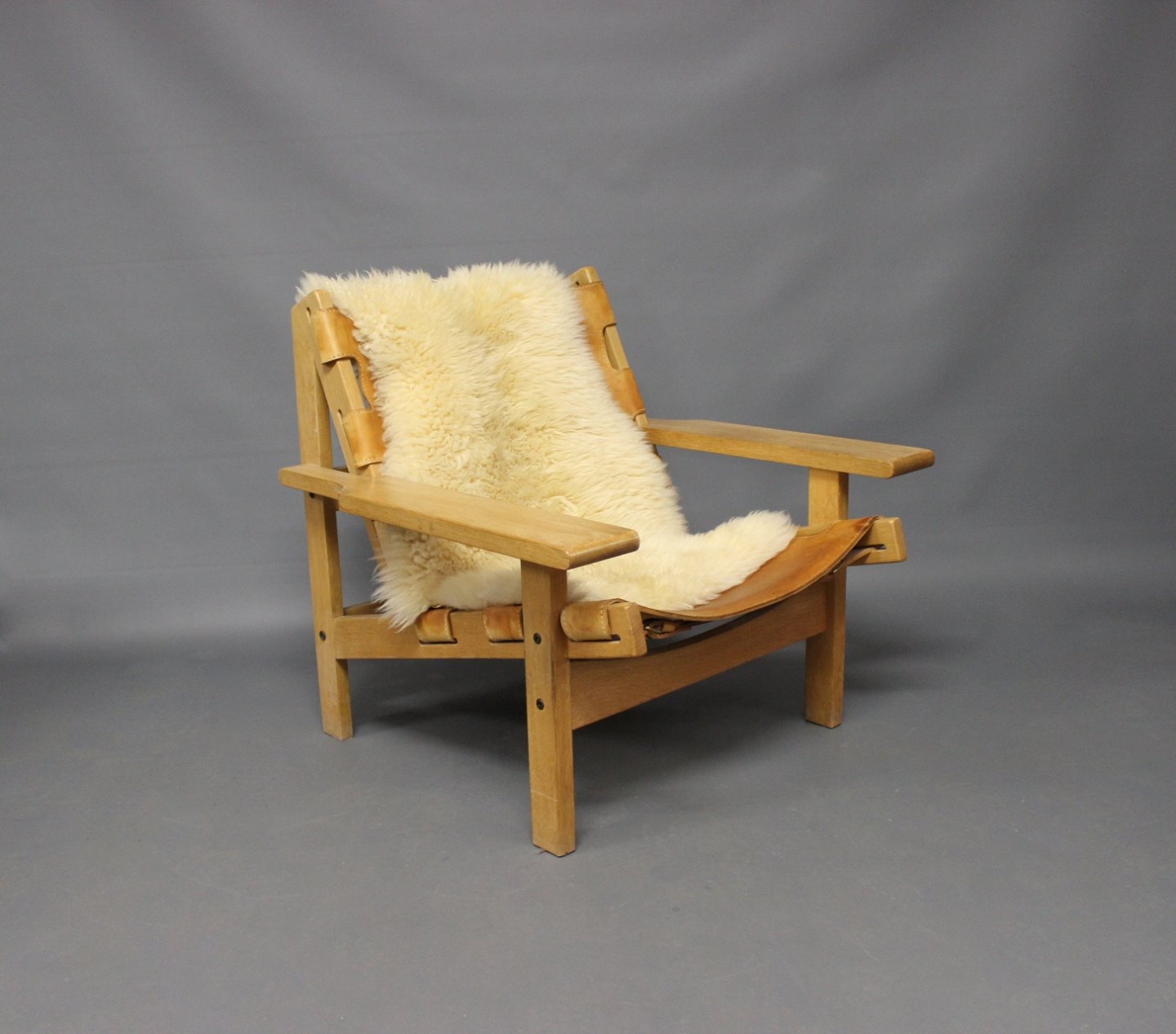 SoldA pair of easy chairs, model 168, designed by Kurt Østervig in soap treated oak and patinated leather with sheep skin.