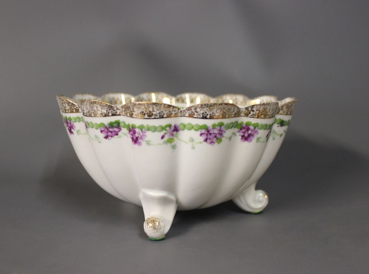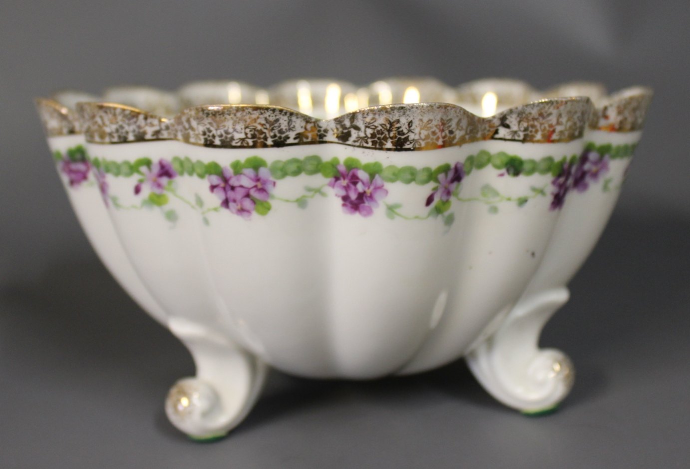 Fin skål på fødder og med guldkant af tysk porcelæn.