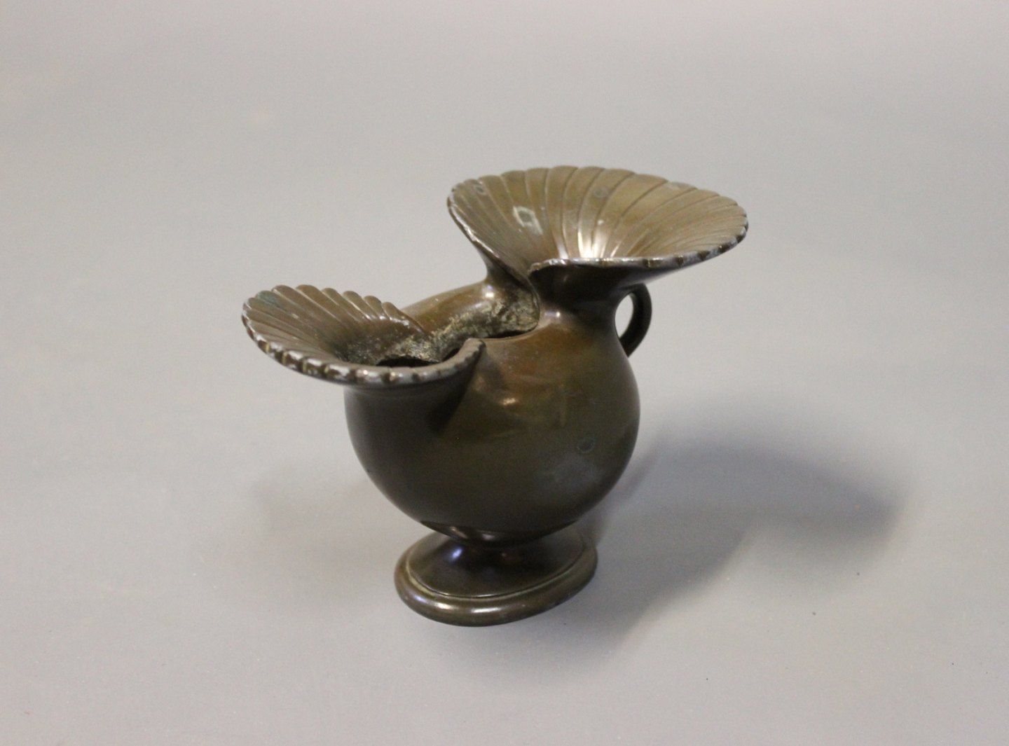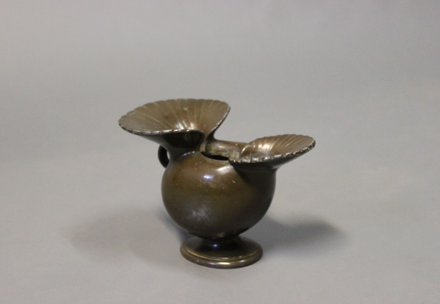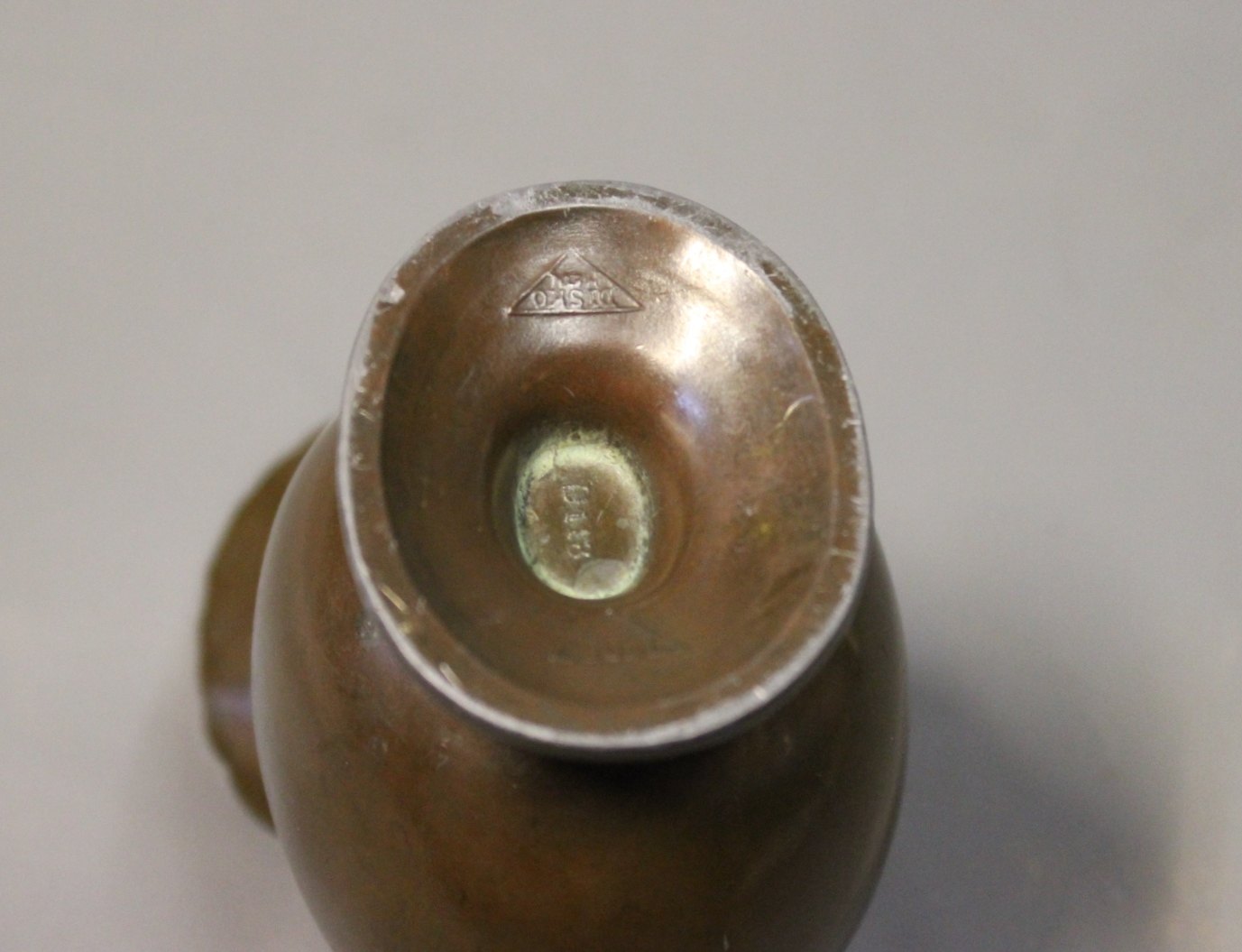 SolgtSpeciel vase i disko metal, designet af Just Andersen i midten af 1930erne. Vasen er nummereret D118.