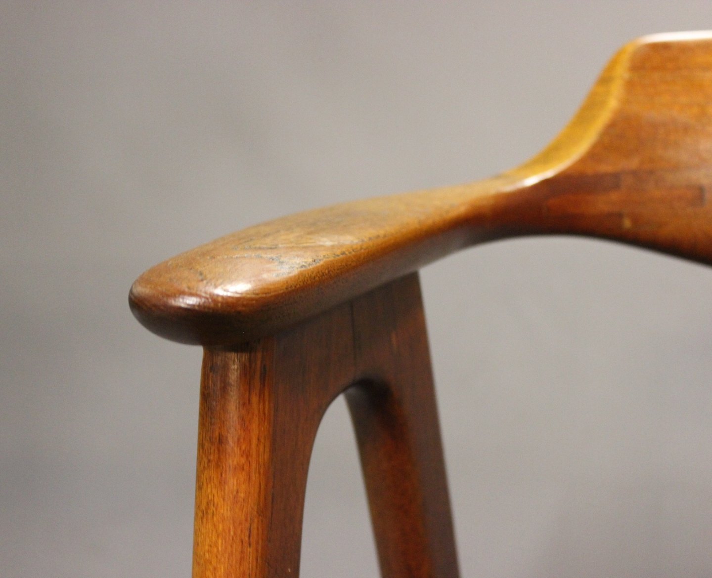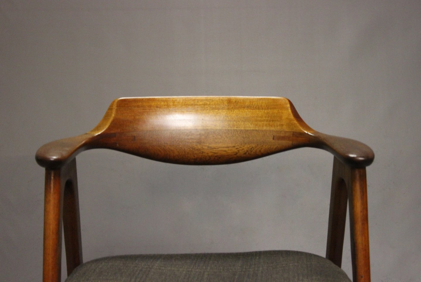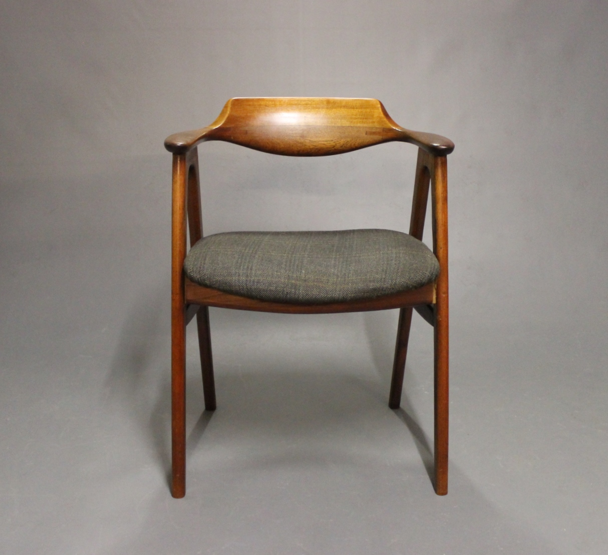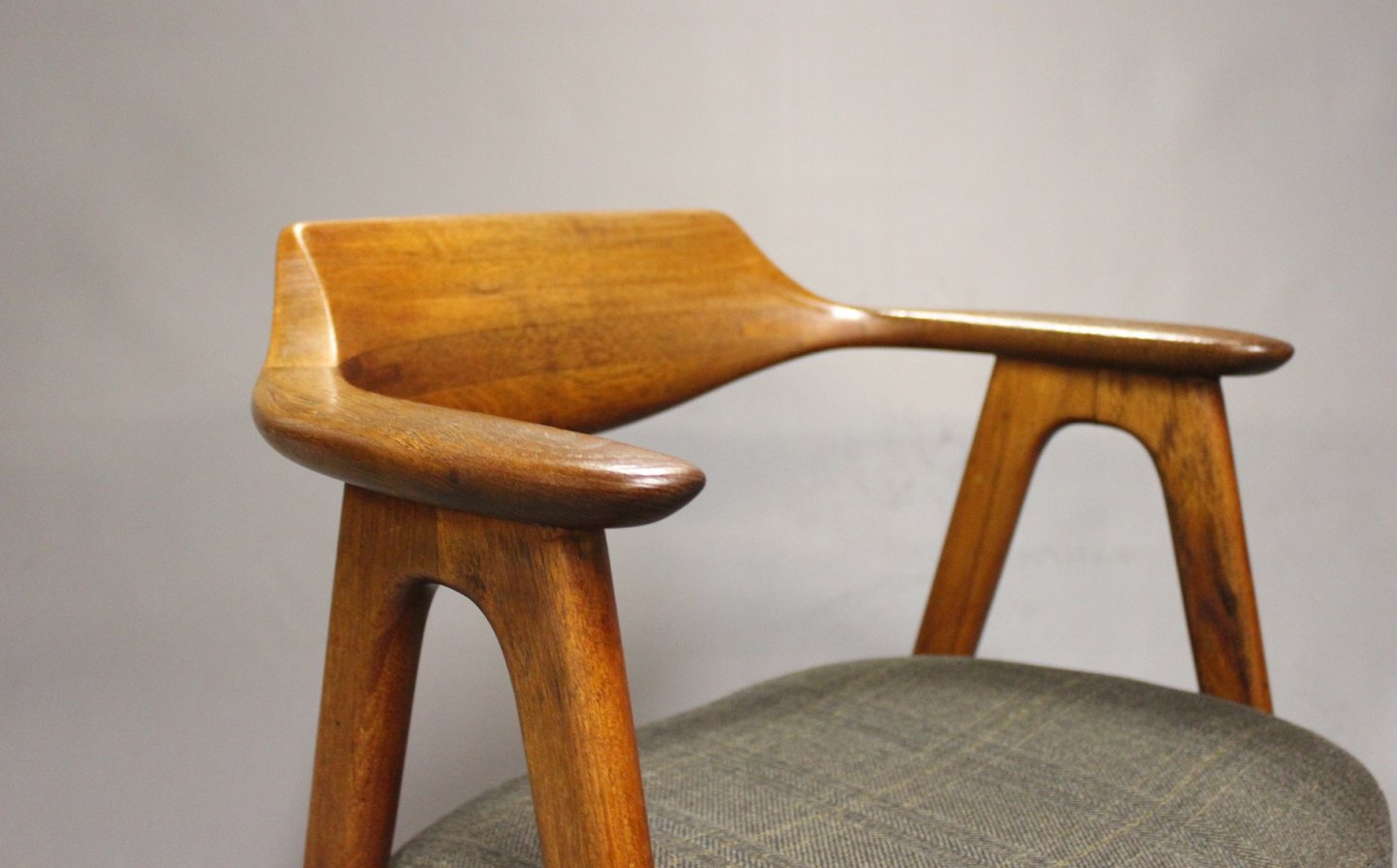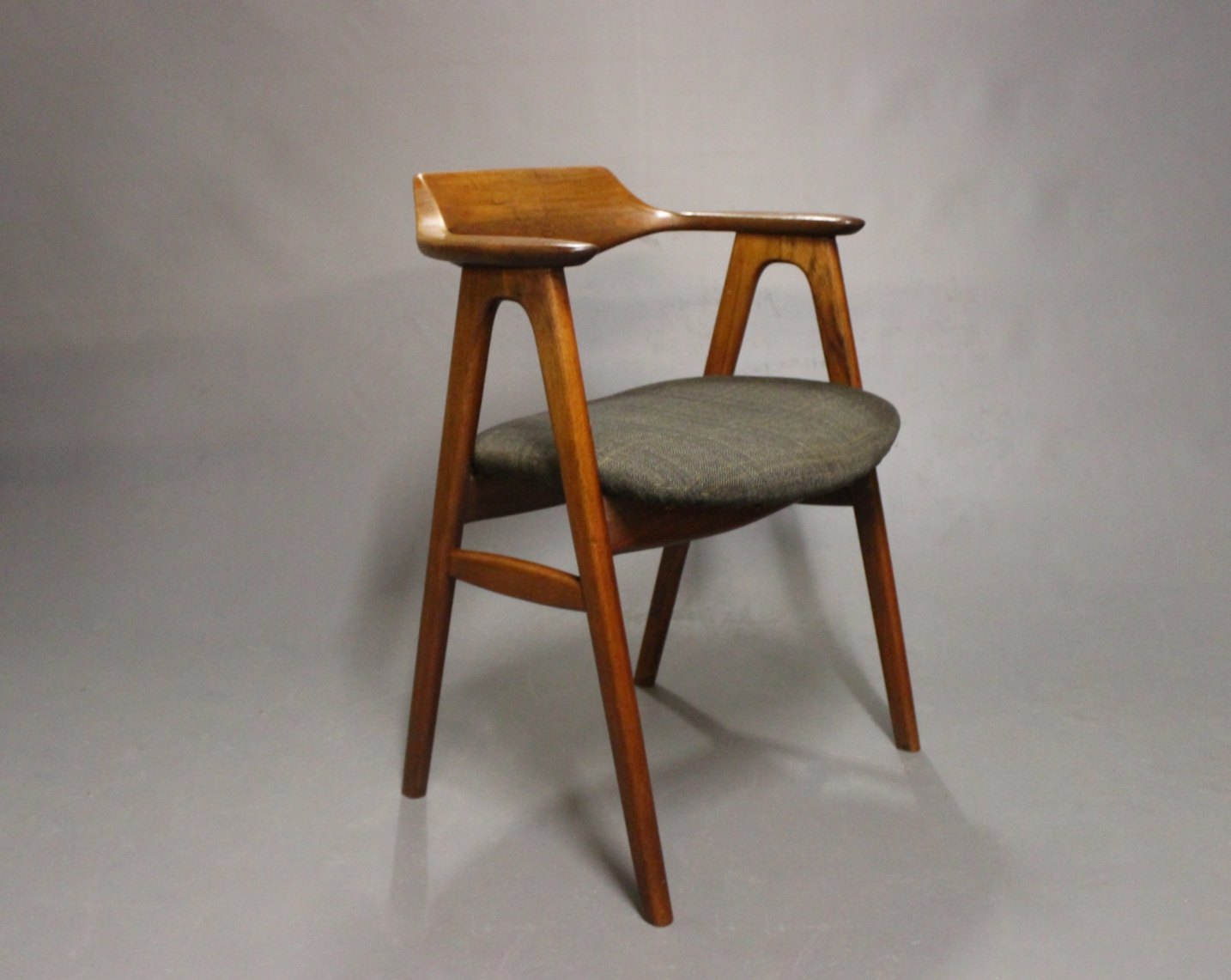 SolgtArmstol i teak og sæde af mørkt uld. Stolen er af Dansk Design fra 1960erne.