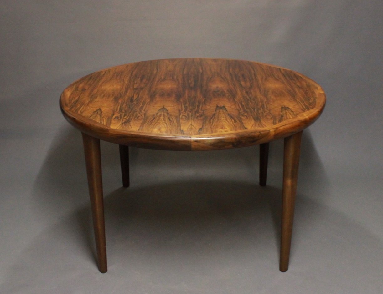SoldDining room table in rosewood designed by Arne Vodder and from the 1960s. The table has two extenion leaves and they can be colored in to match the table.