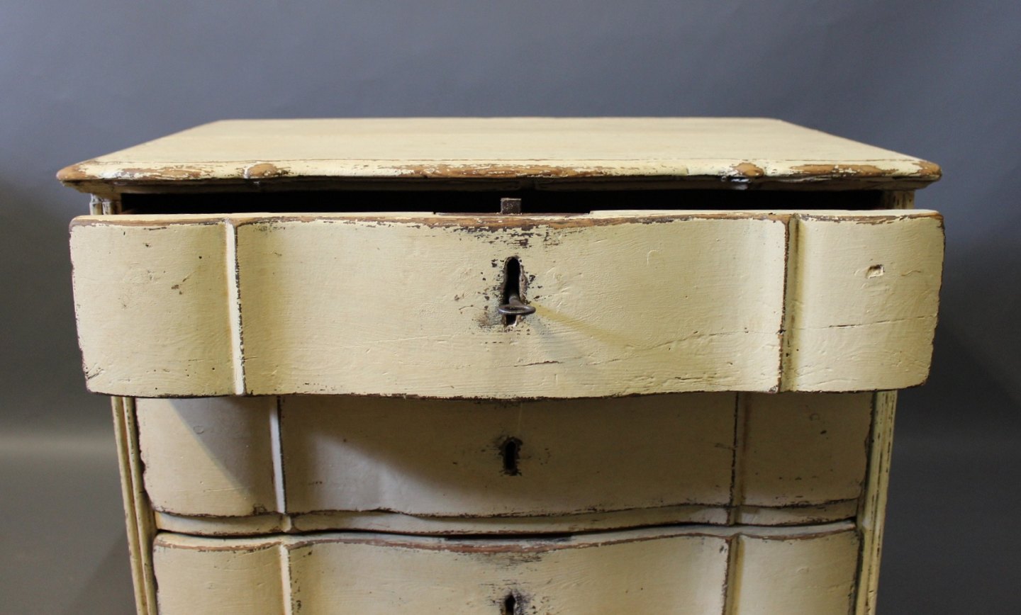 SoldSmall danish baroque chest of drawers of painted wood from the 1760s.