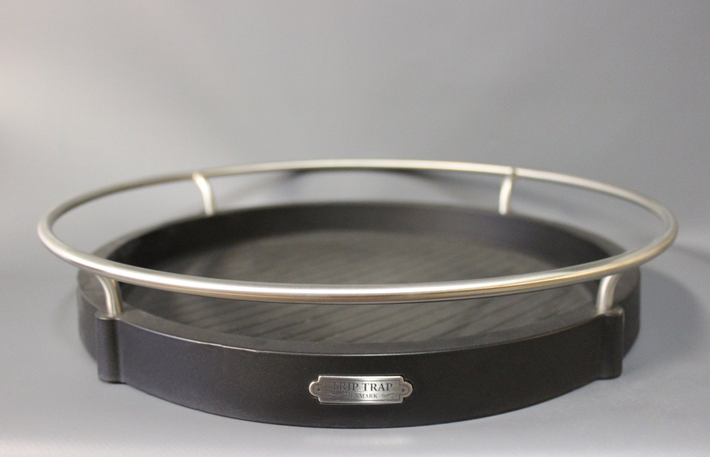 SolgtTrip Trap serveringsbakke i sort plastic og metal kant.