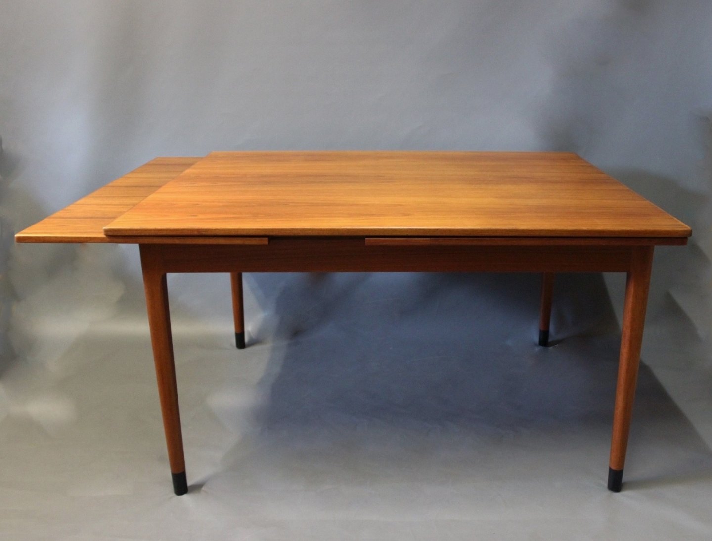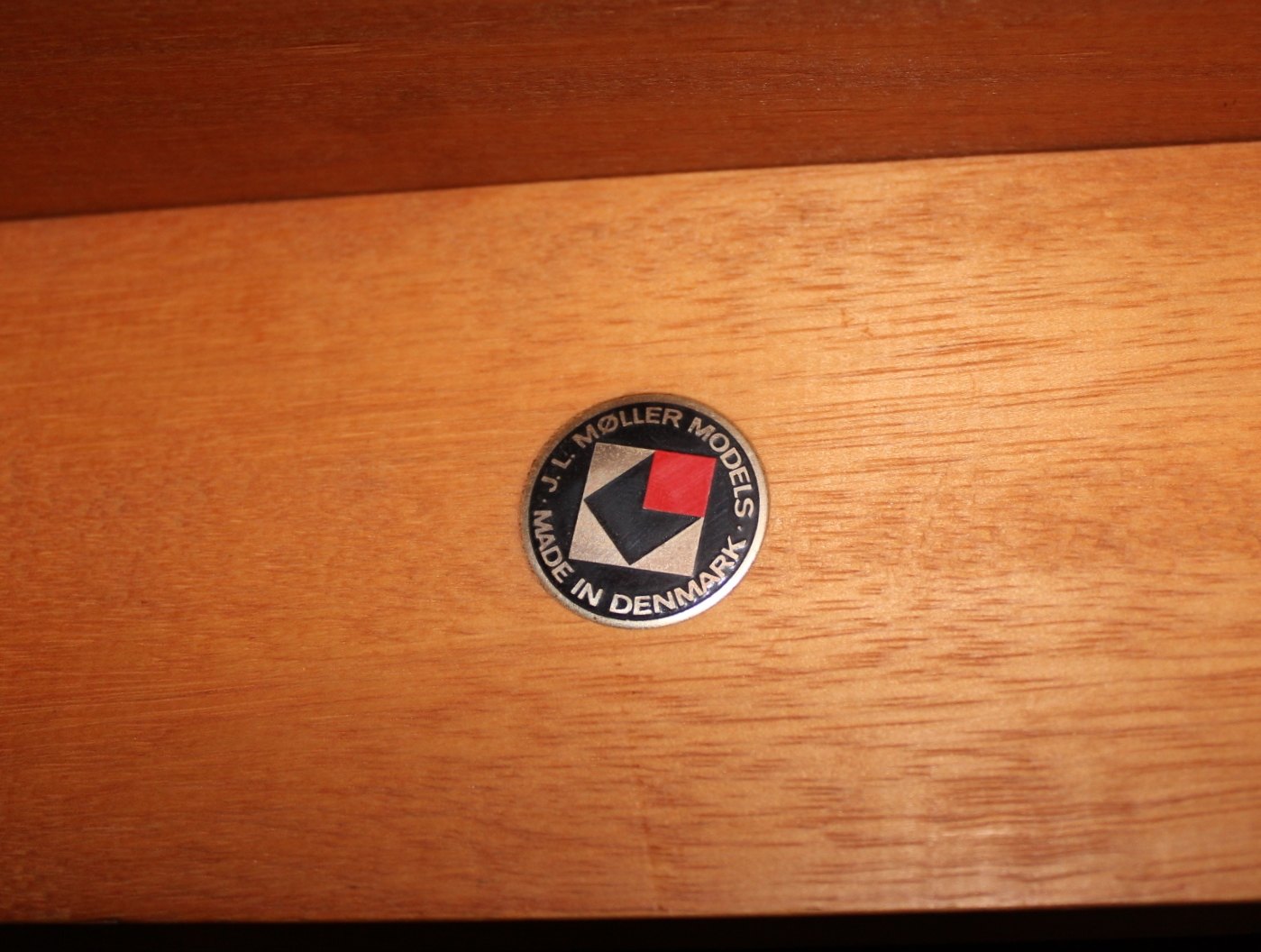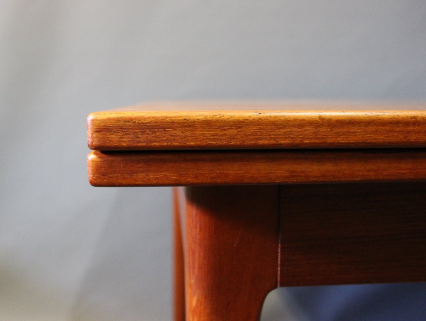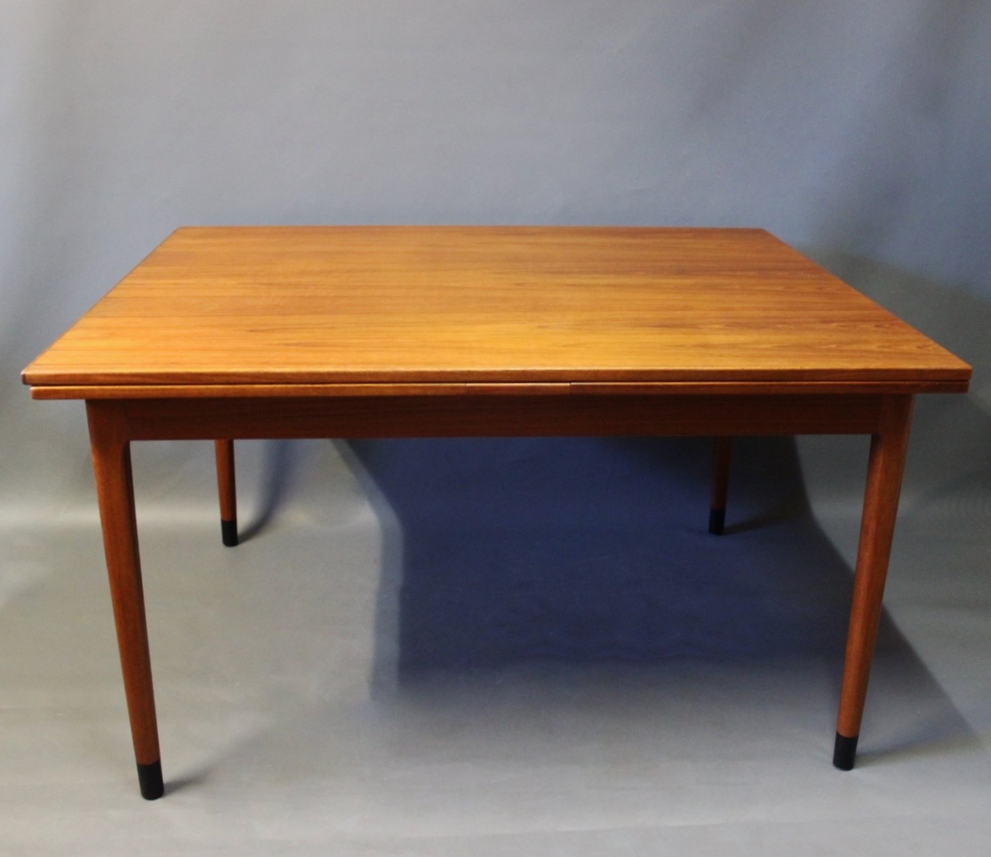 SolgtSpisebord i teak med ibenholt og 2 udtræksplader designet af N.O. Møller og fremstillet af J.L. Møller i 1960erne. Bordet er rigtig flot brugt stand.