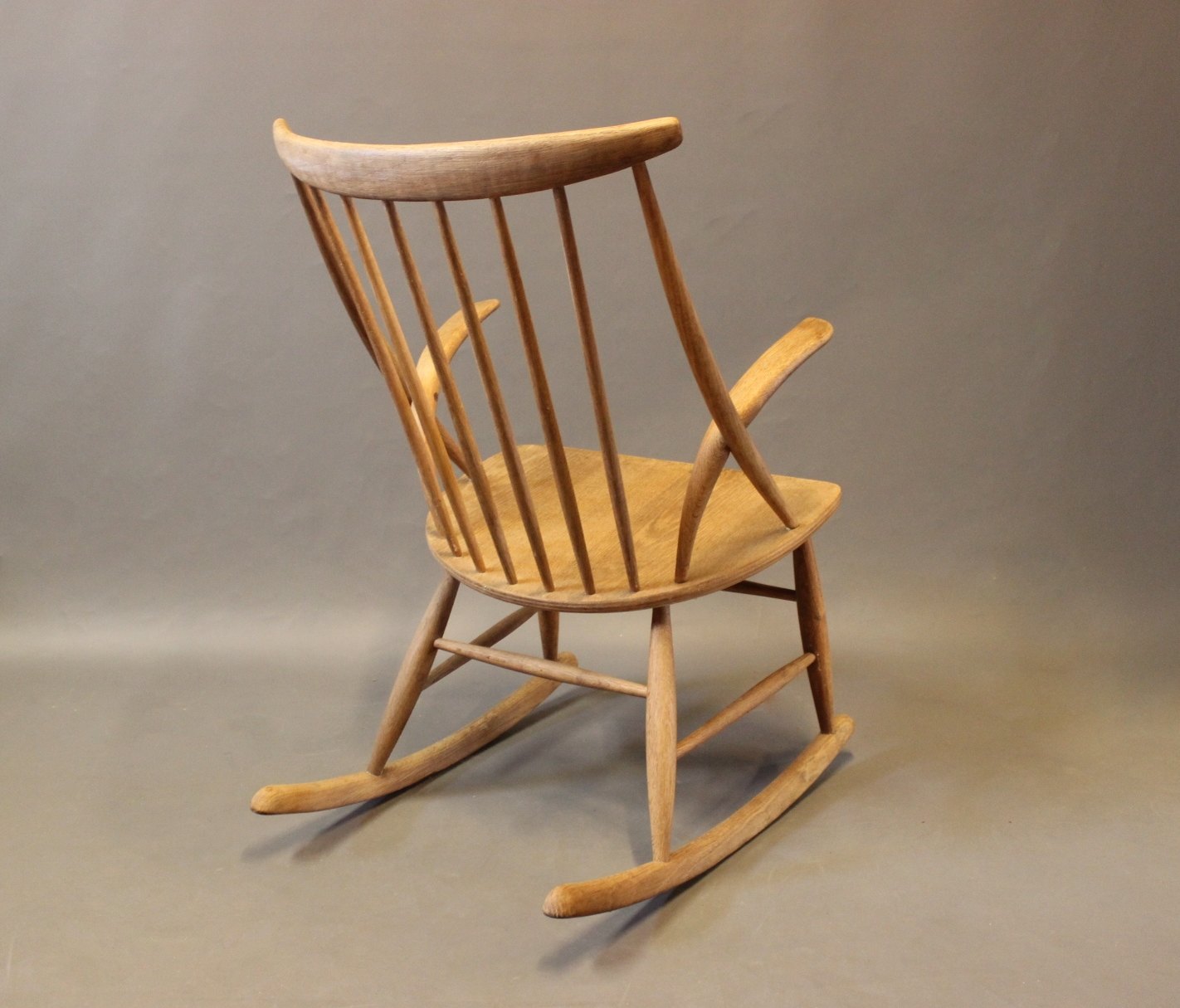 Gyngestol i sæbebehandlet eg designet af Illum Wikkelsø og fra 1960erne.