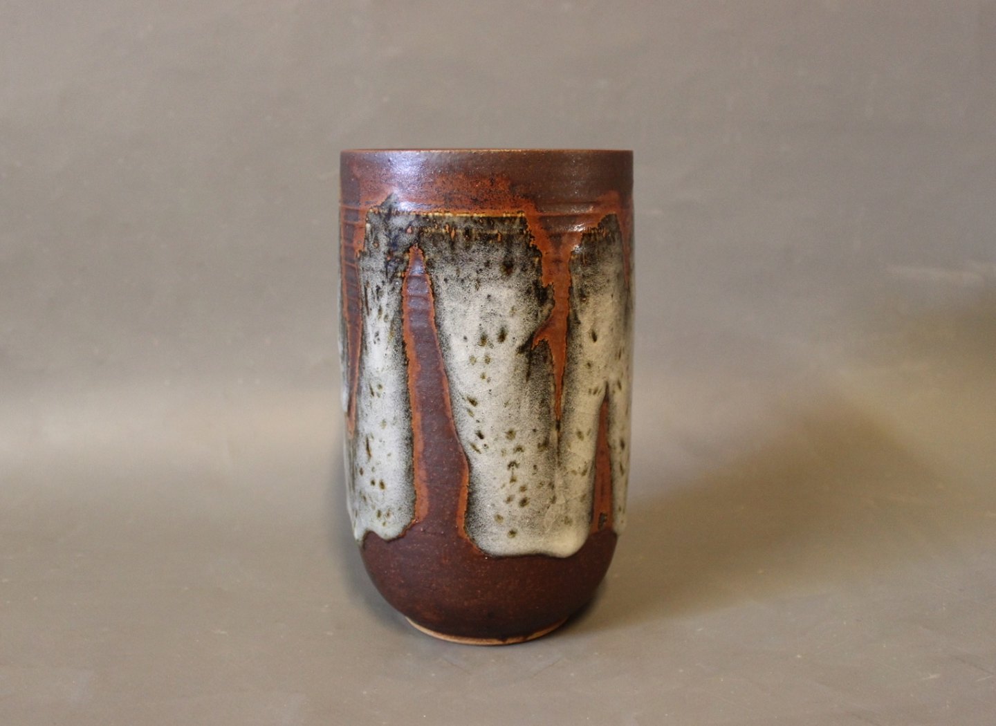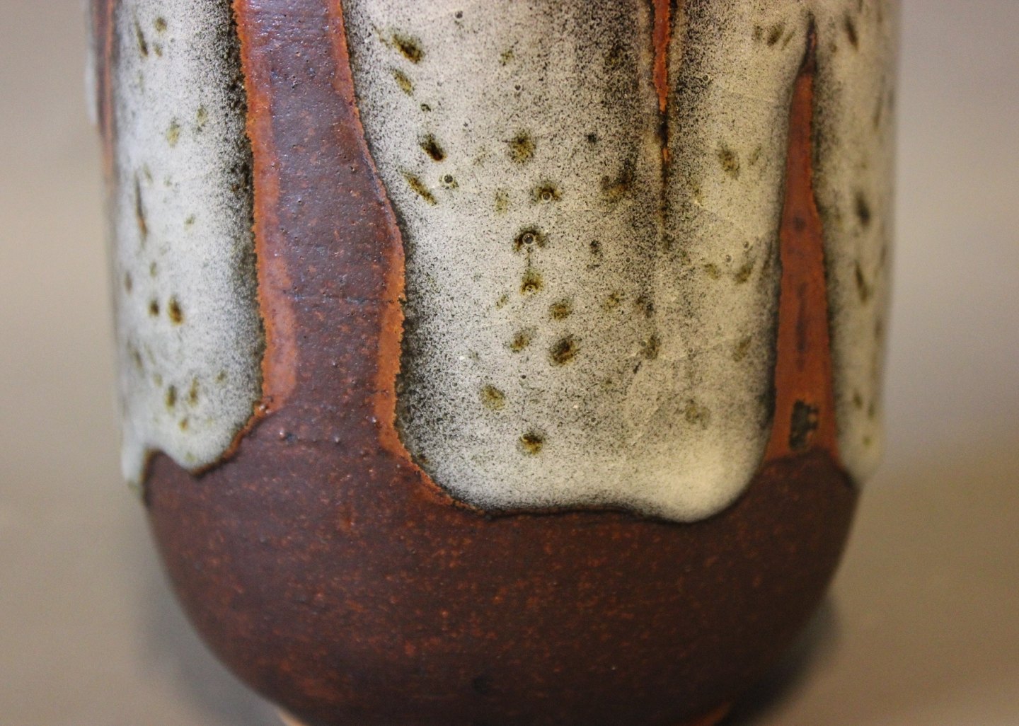 Vase i brun med lyst glasur af Jørgen Mogensen stemplet D41.