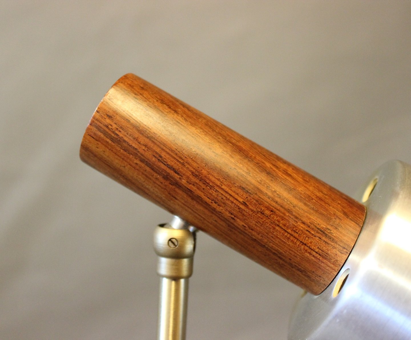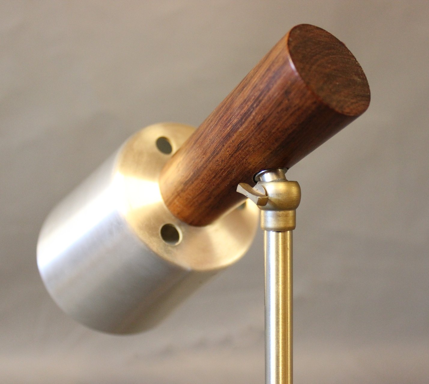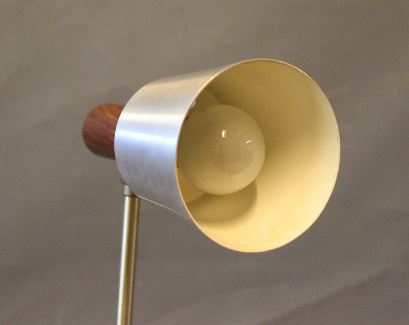 Small table lamp with shade of steel and frame of rosewood. The lamp is of danish design from the 1960s.