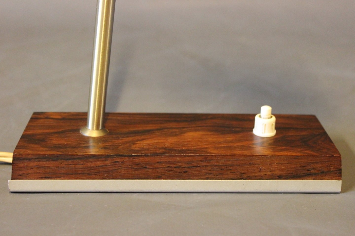 Small table lamp with shade of steel and frame of rosewood, danish design from the 1960s.