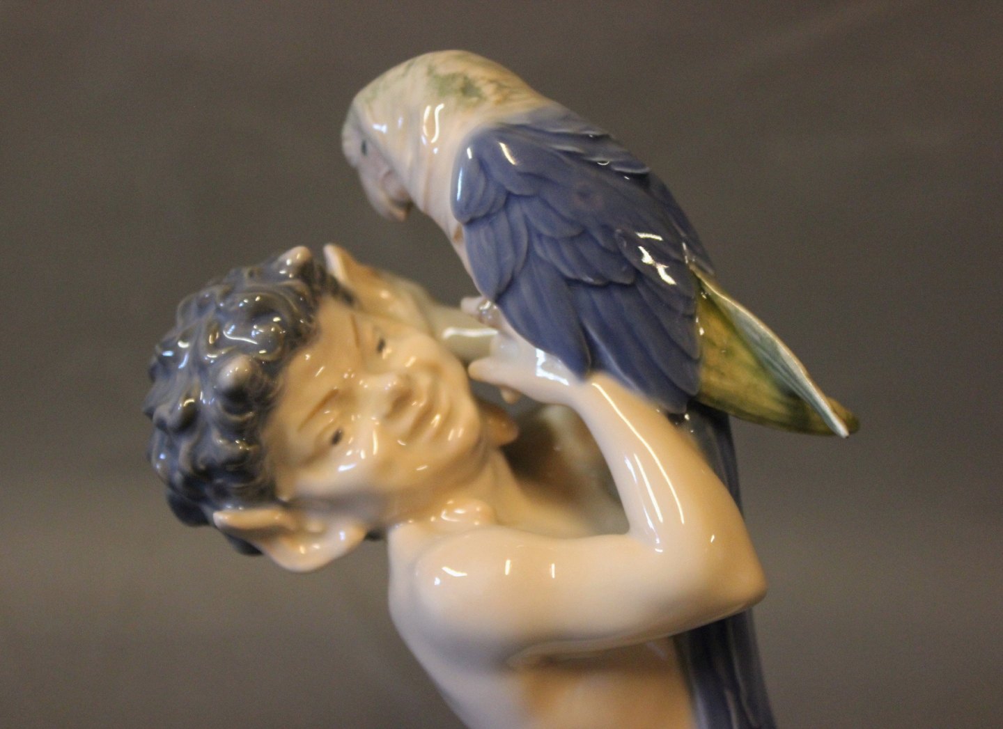 SolgtKgl. porcelænsfigur, Pan med papegøje, nr.: 752.