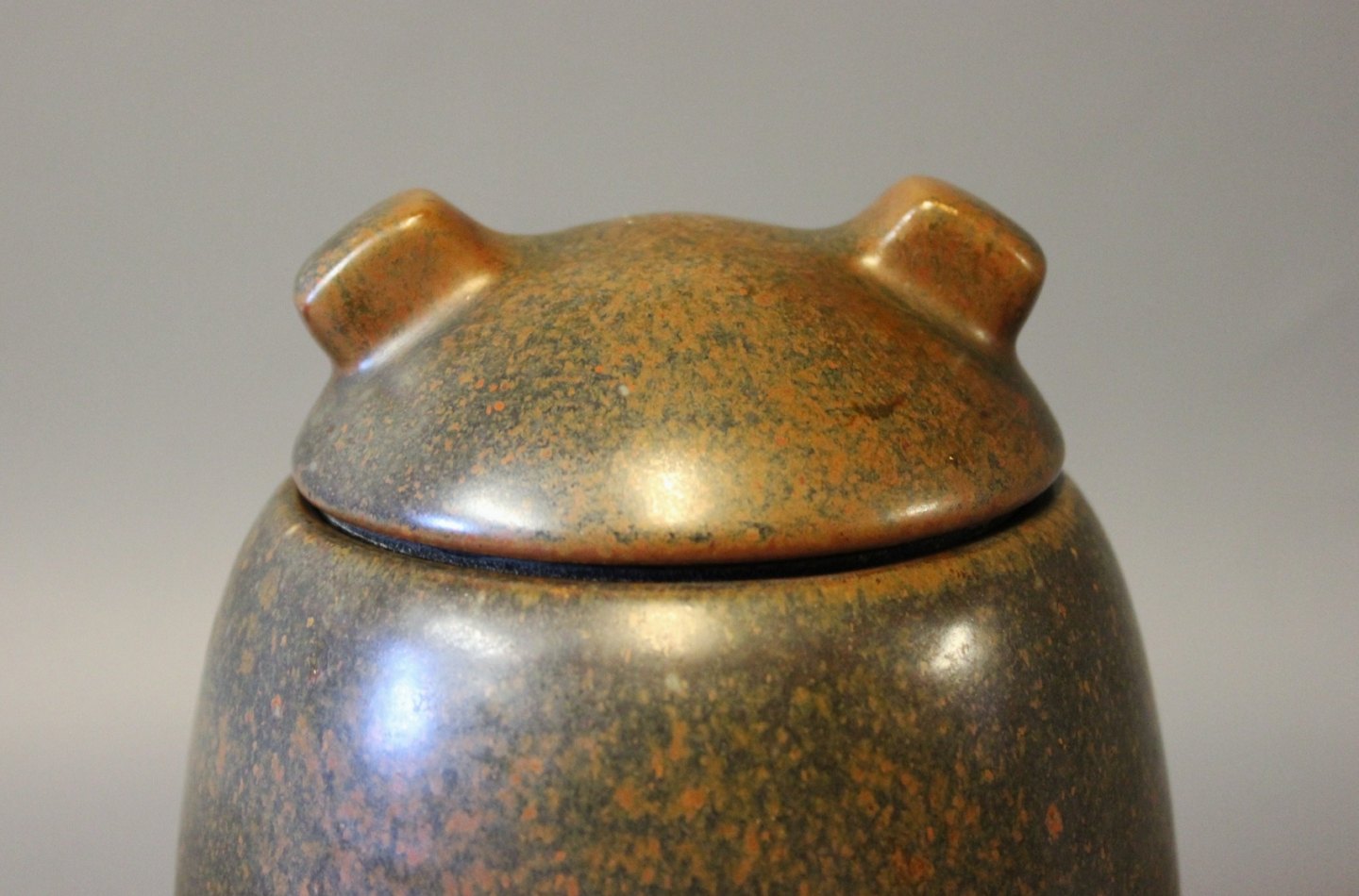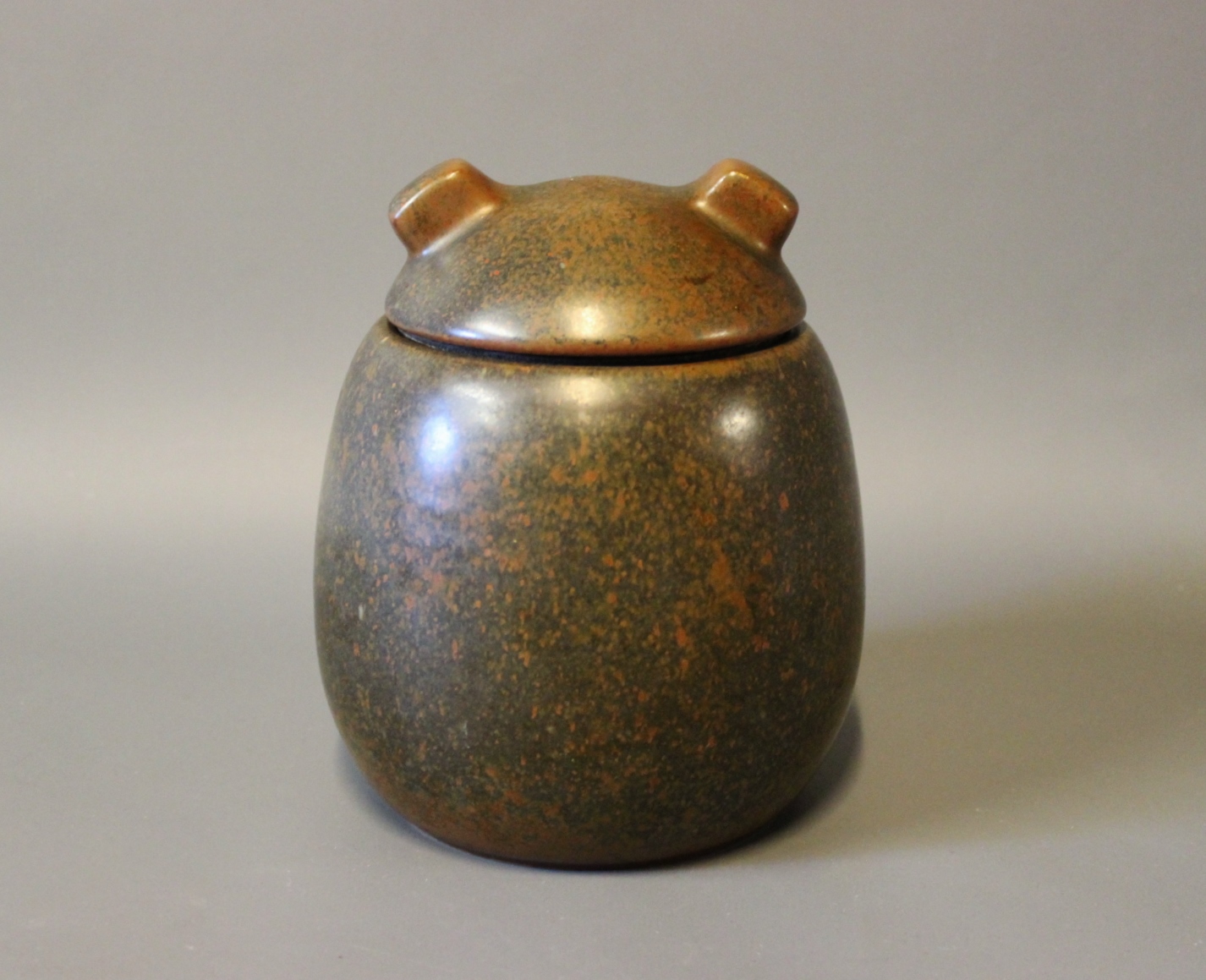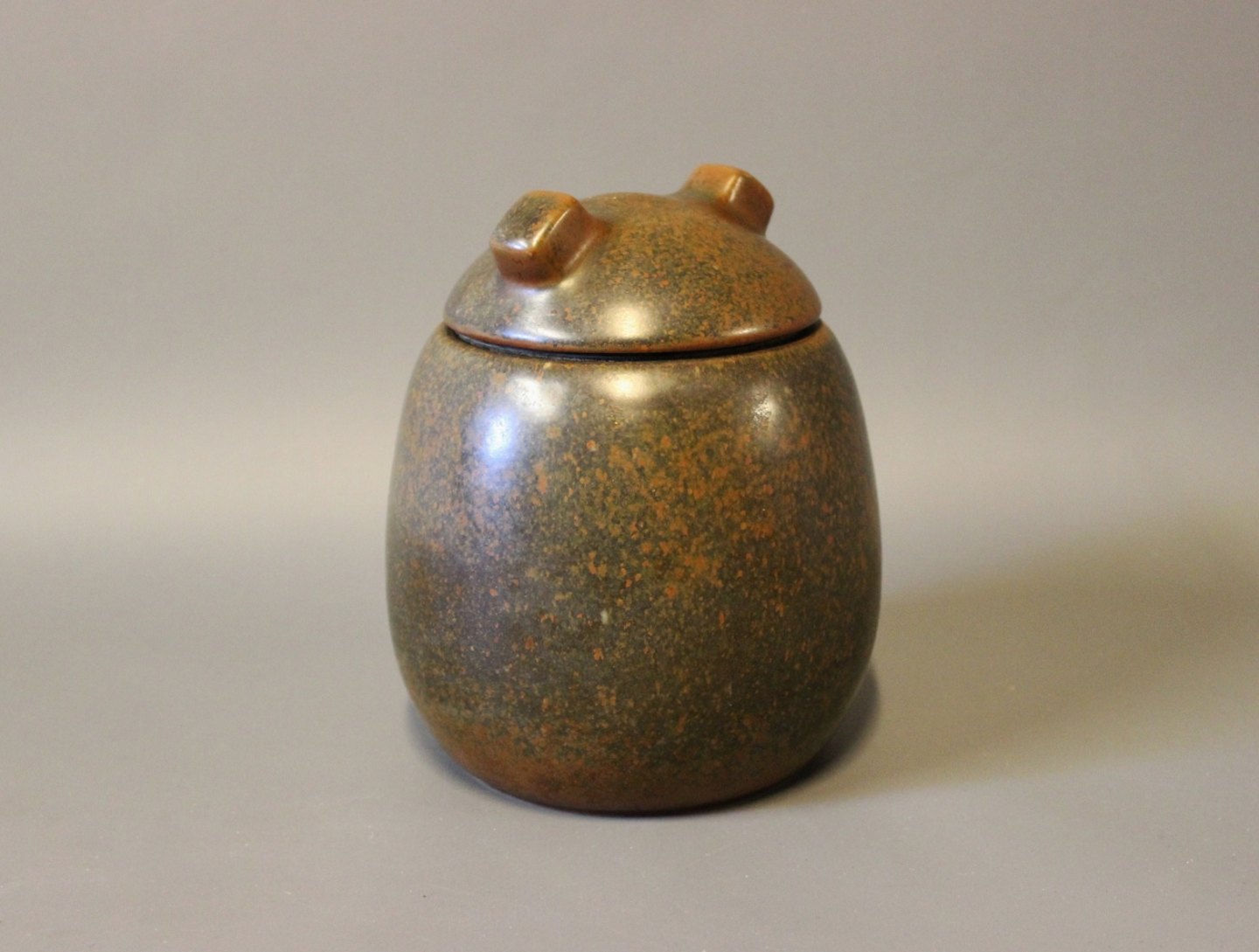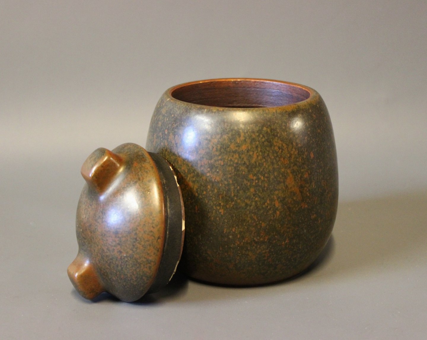 Ceramic lidded jar with dark brown glaze by Erik Rahr for Saxbo.