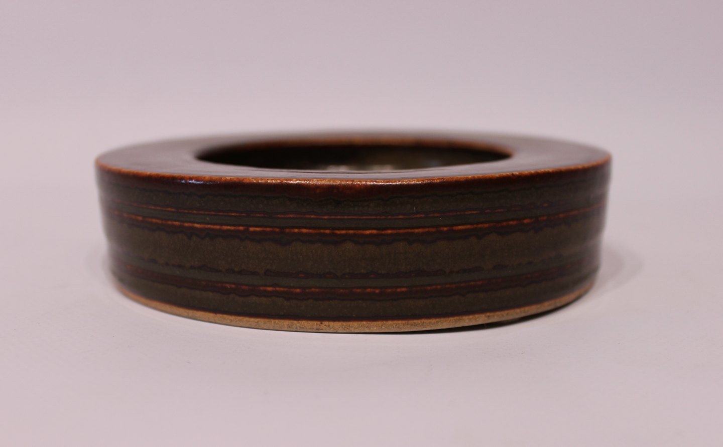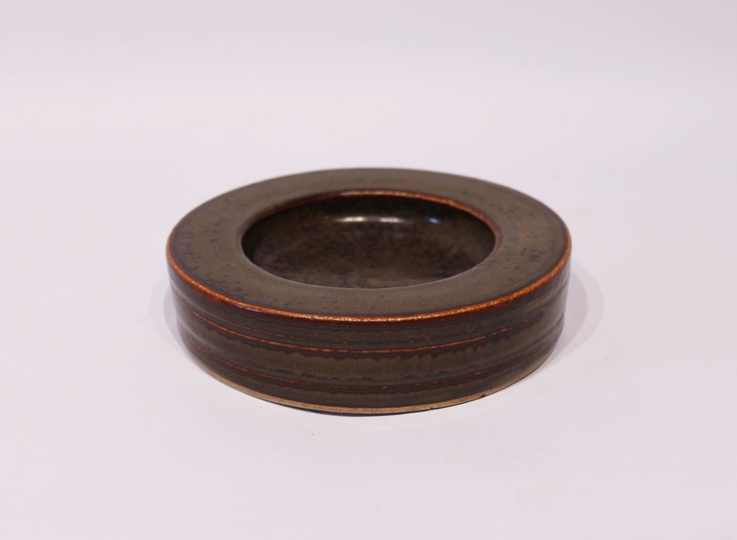 Rundt keramik fad i brune farver af Valdemar Petersen for B&G, nr.: 232.
