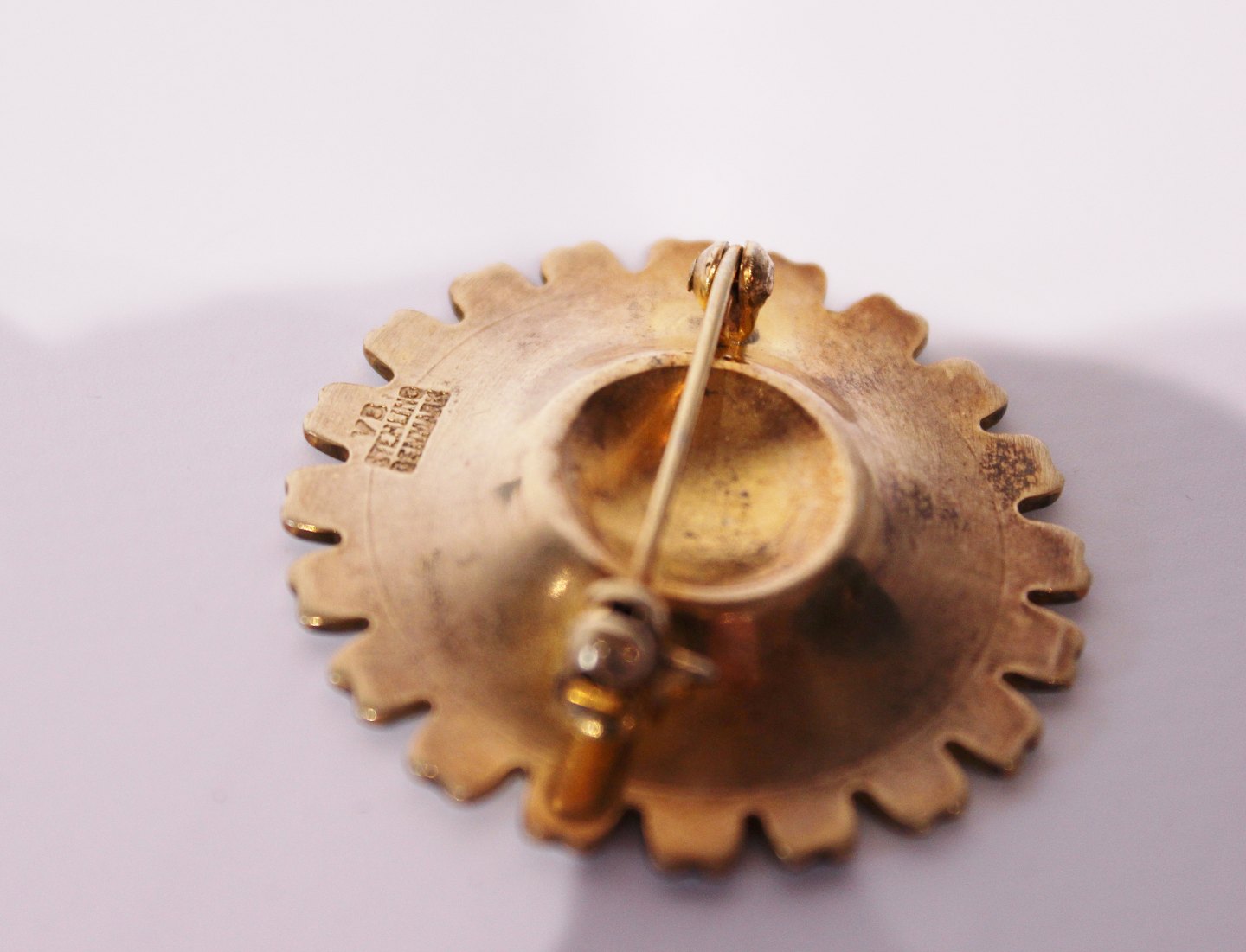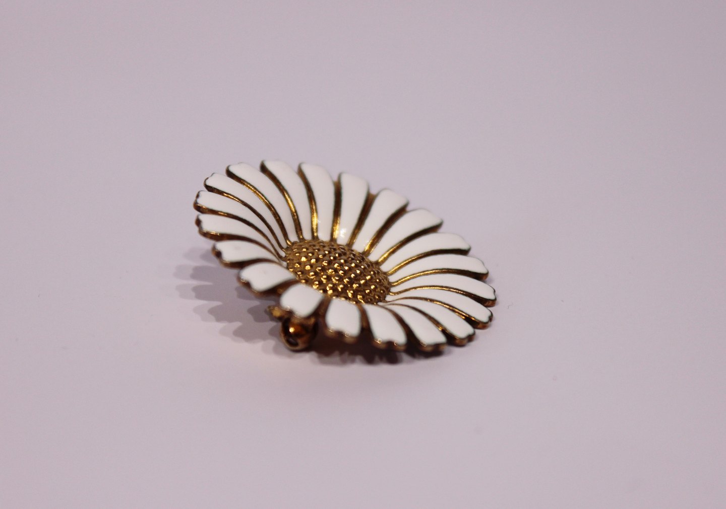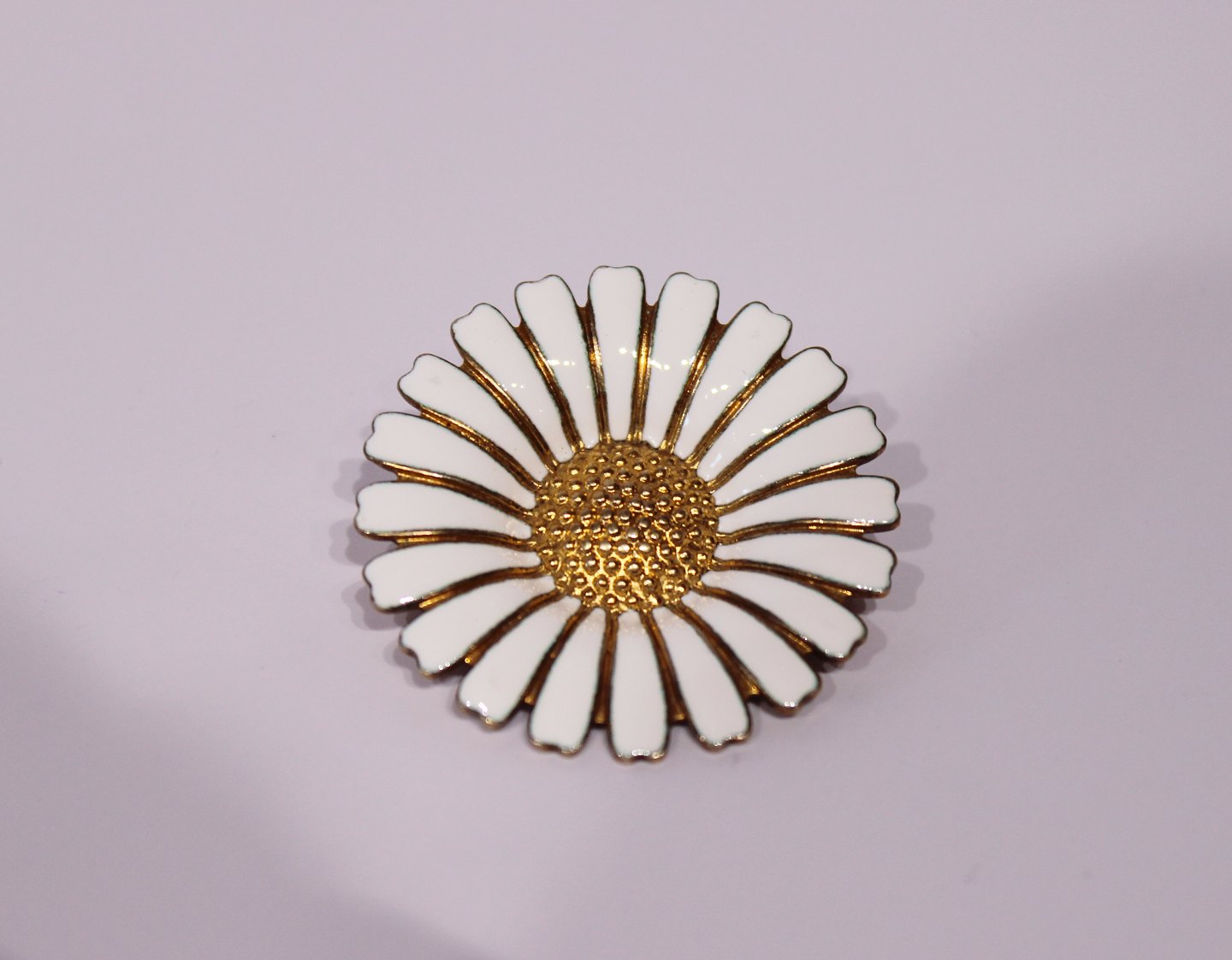 SoldDaisy brooch in gilded 925 sterling silver and enamel, stamped VB by Volmer Bahner.