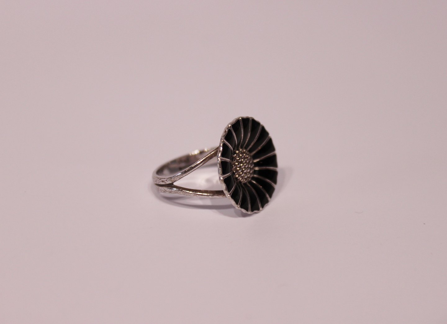 SolgtSort Marguerit ring i 925 sterling sølv.