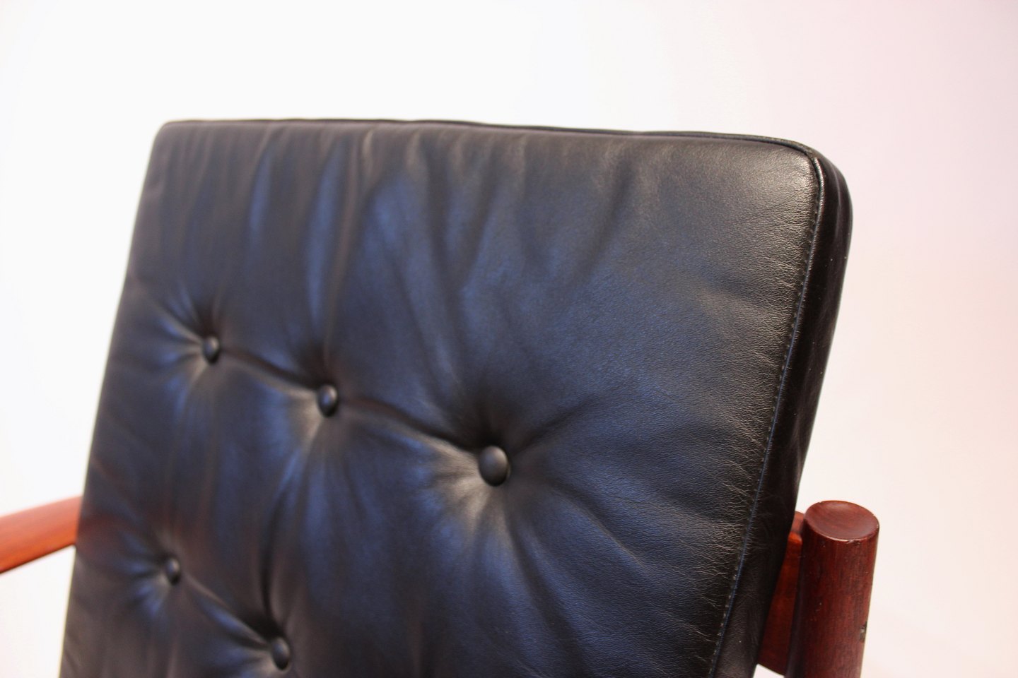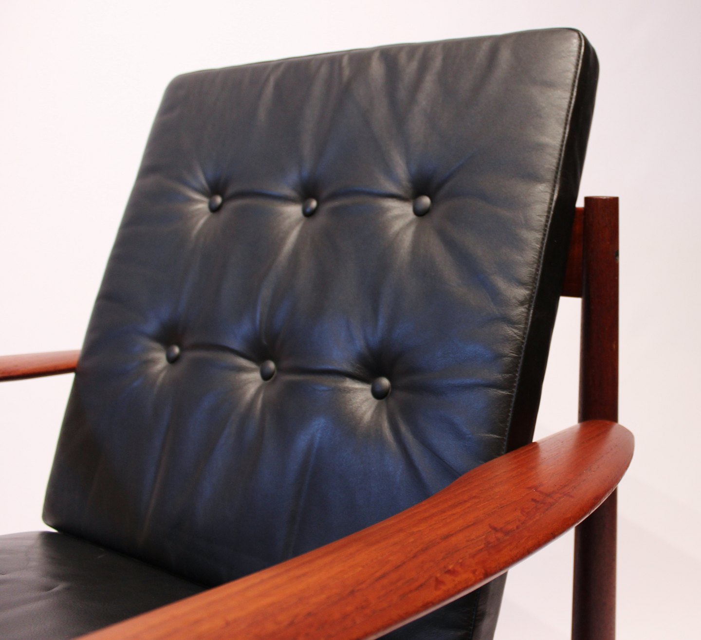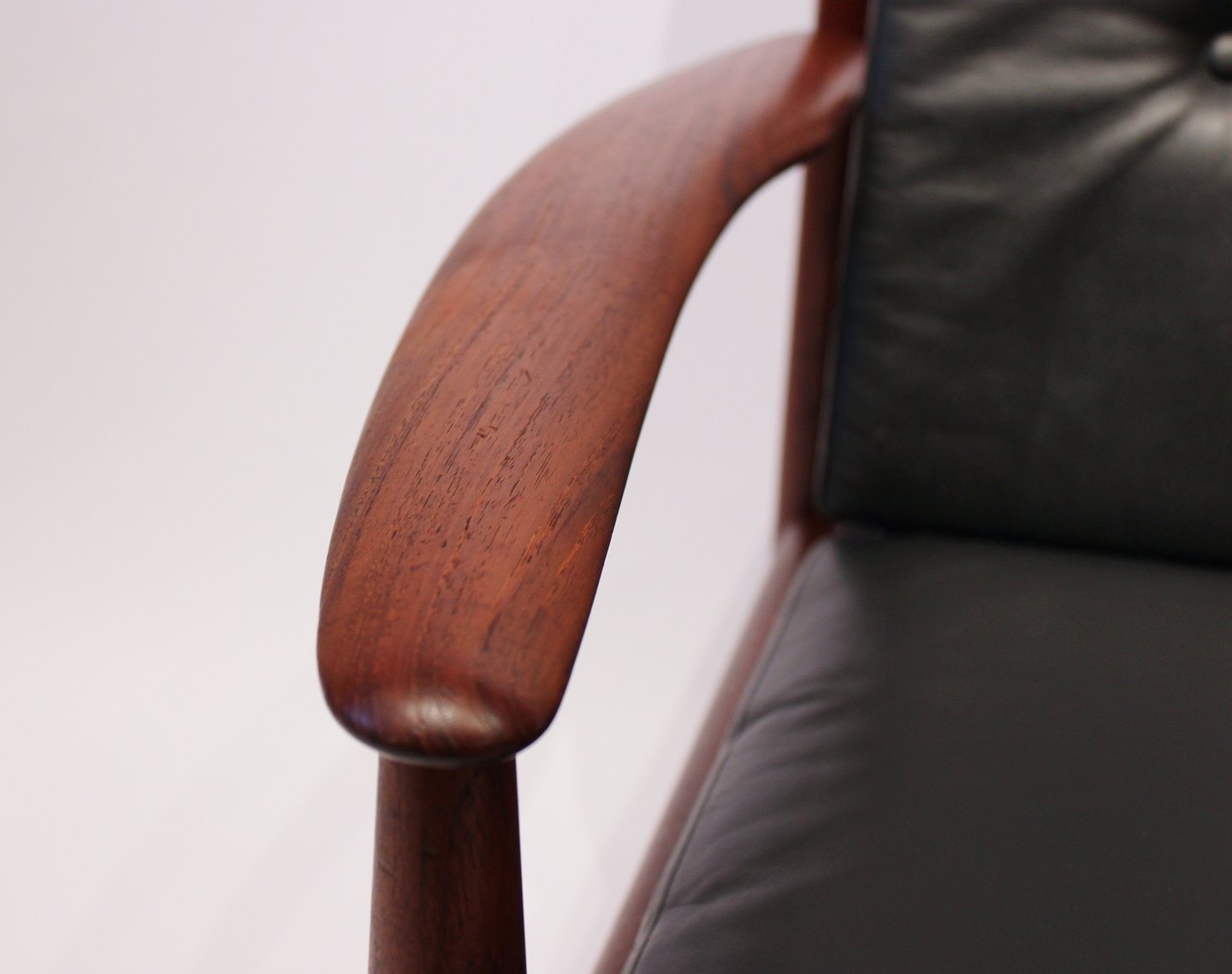 SolgtHvilestol, model 118, i teak og sort elegance læder designet af Grete Jalk og fremstillet af France & Son i 1960erne.