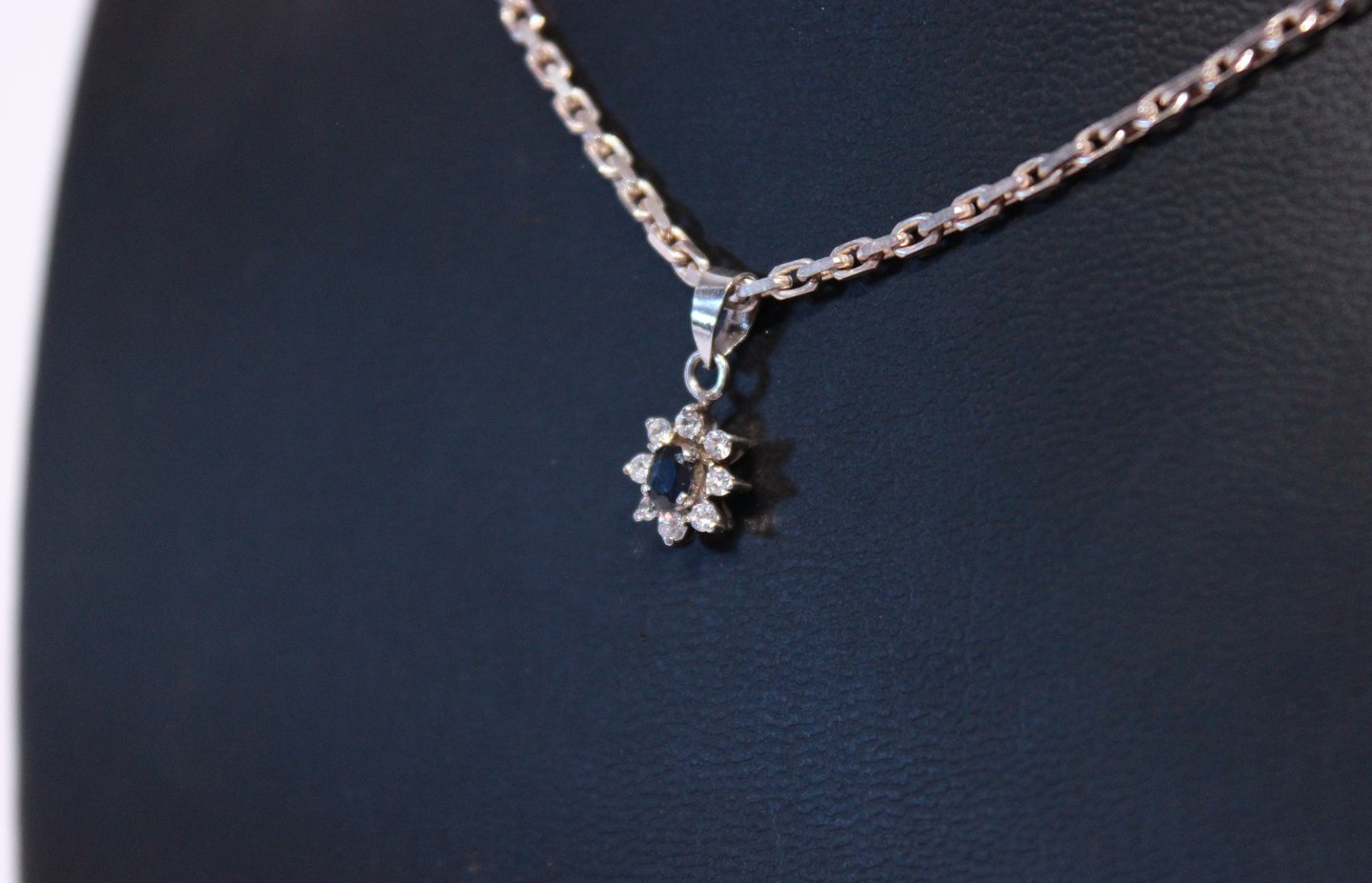 Necklace with pendant with saphire, stones and of 925 sterling silver.