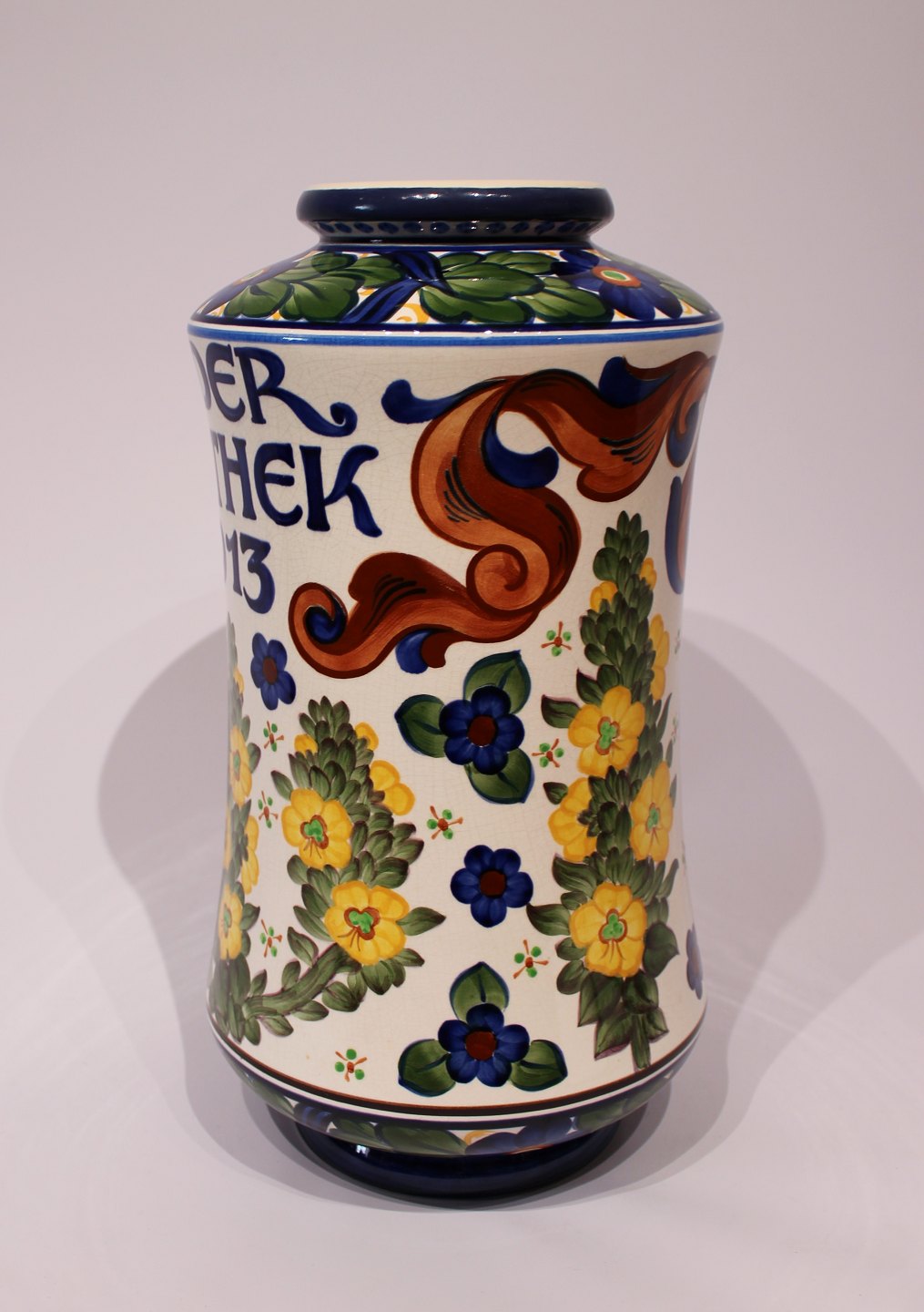 SoldLarge floor vase decorated in beautiful colors, no.: 958/411 by Aluminia.