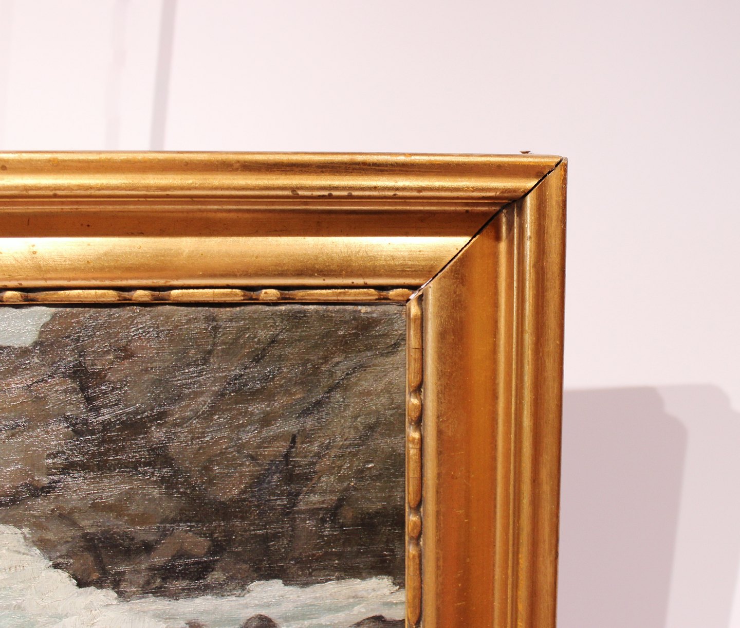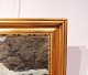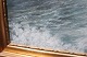 Oliemaleri med motiv af bølger på en dansk stand og med forgyldt ramme.