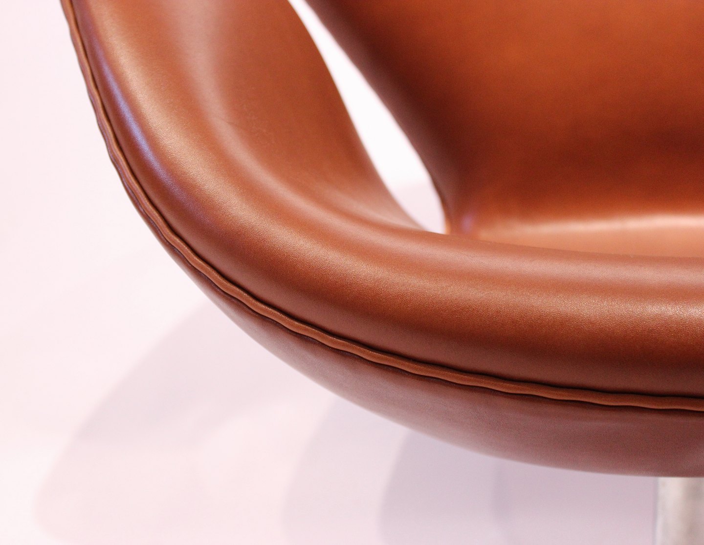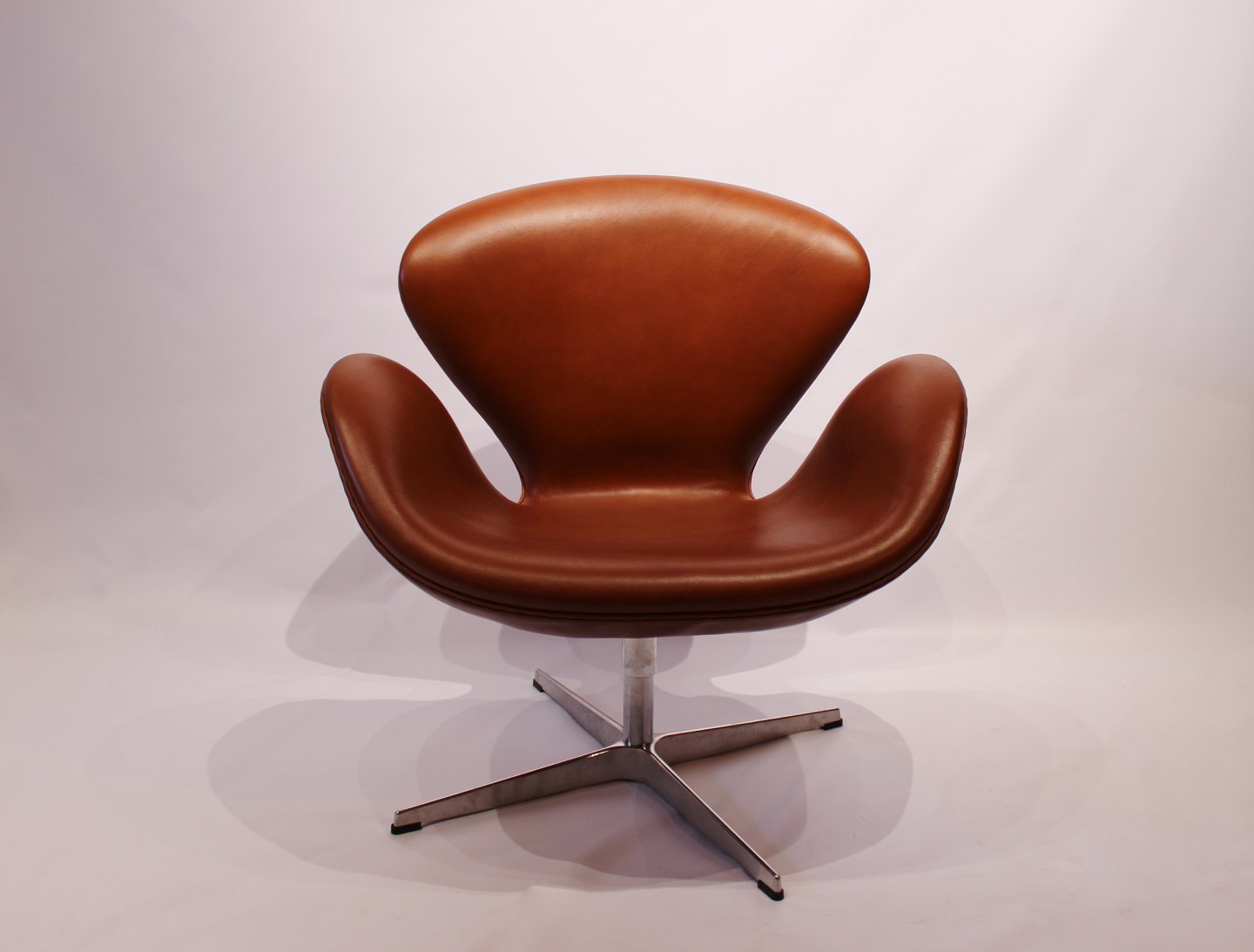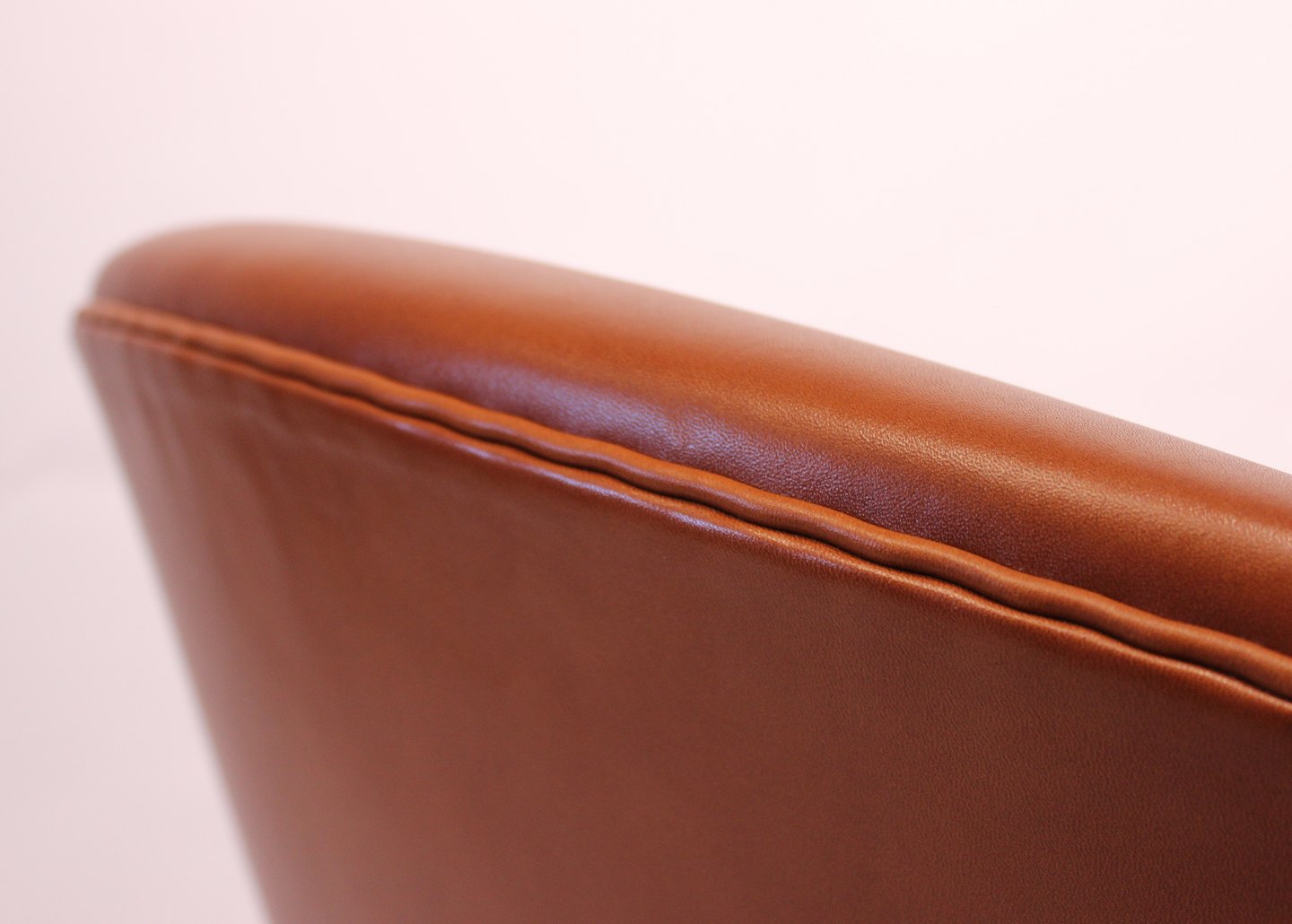 SoldSwan chair, model 3320, designed by Arne Jacobsen in 1958 and manufactured by Fritz Hansen in 2015. The chair is upholstered in walnut elegance leather.