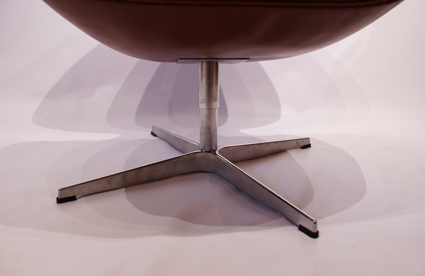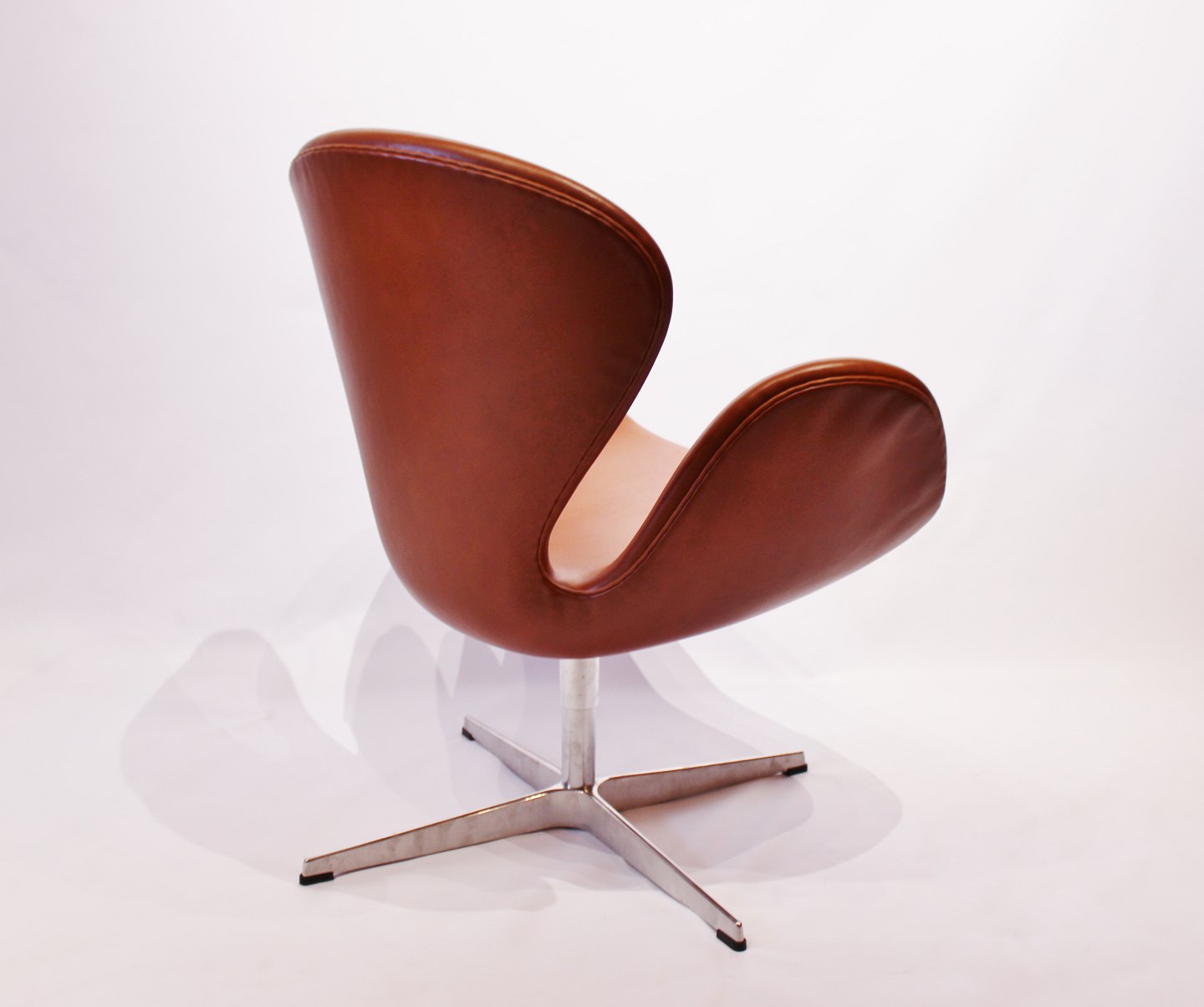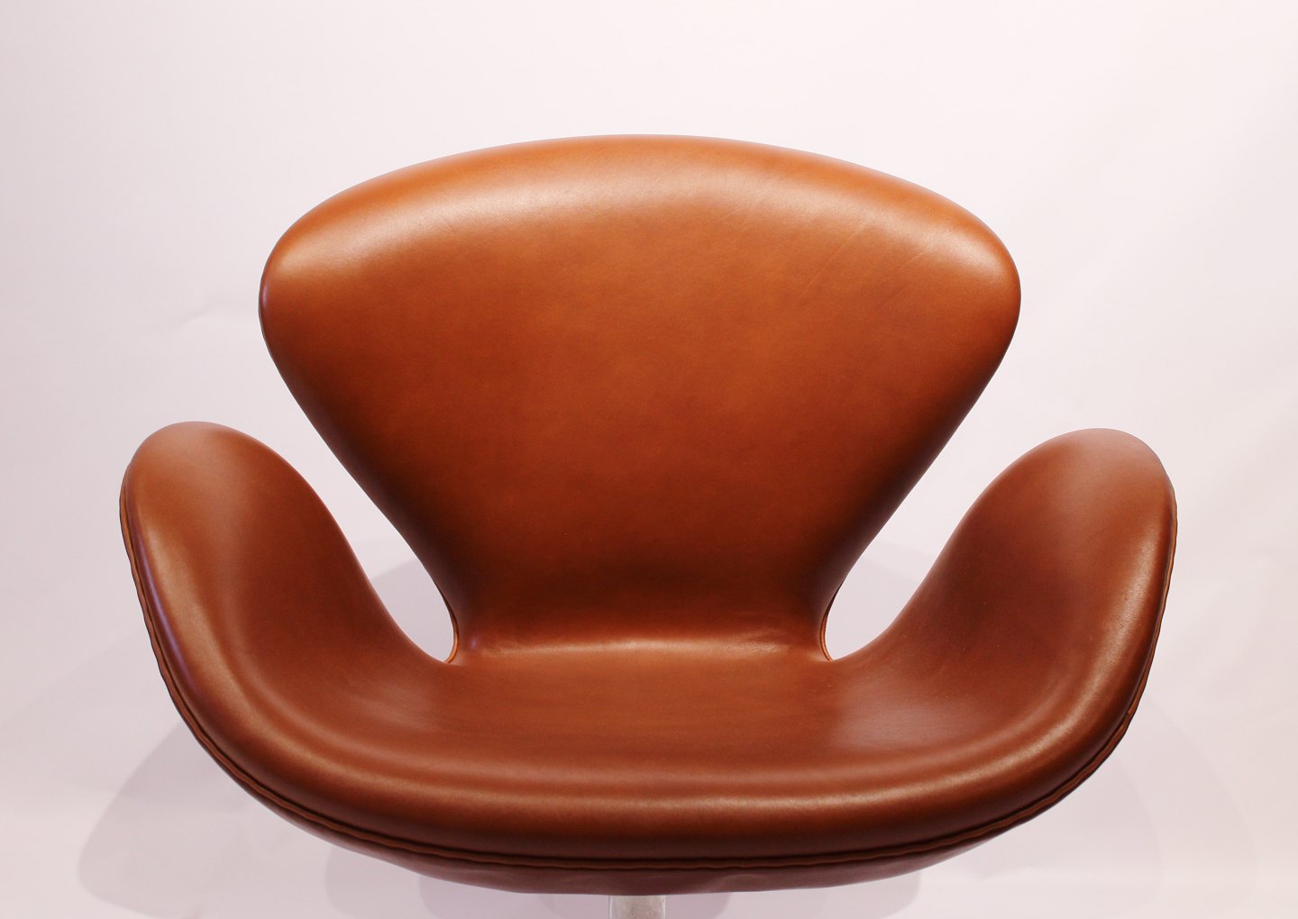 SoldSwan chair, model 3320, designed by Arne Jacobsen in 1958 and manufactured by Fritz Hansen in 2015. The chair is upholstered in walnut elegance leather.