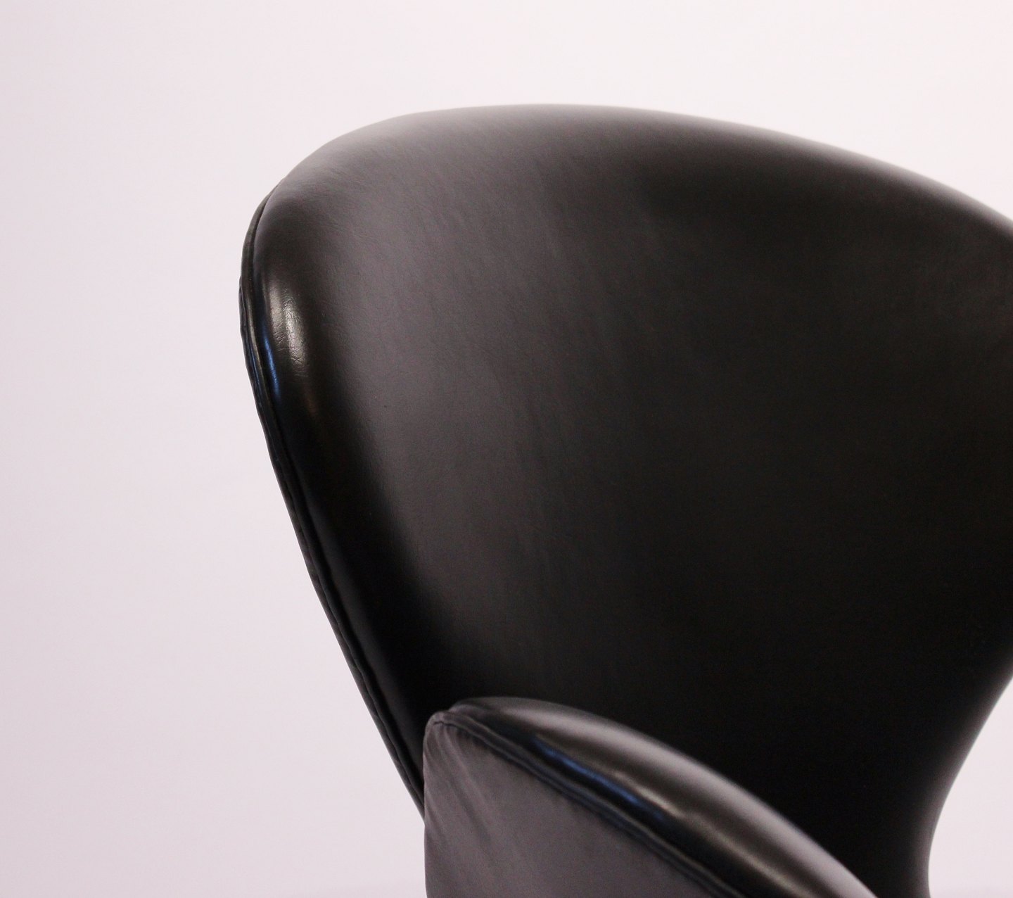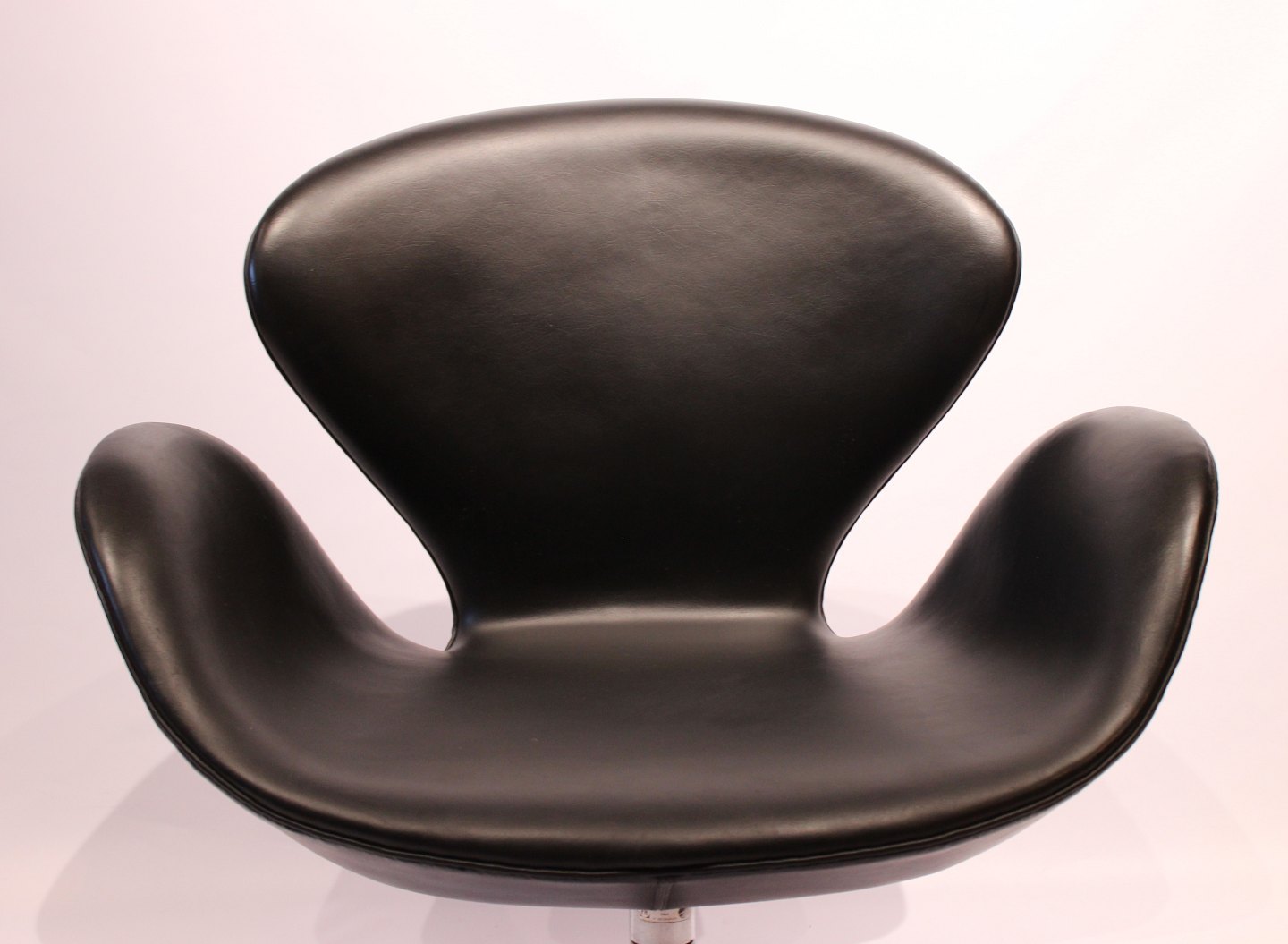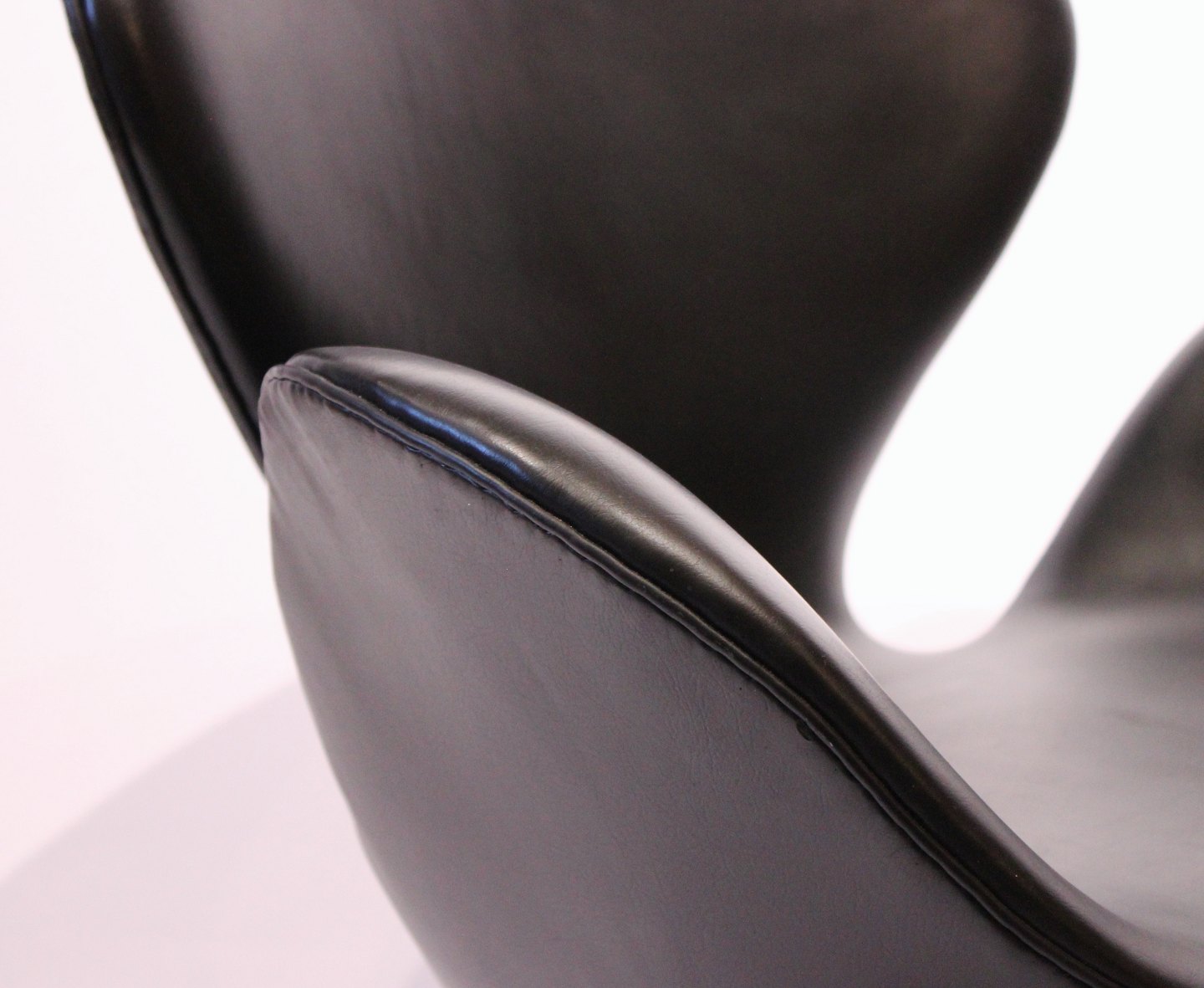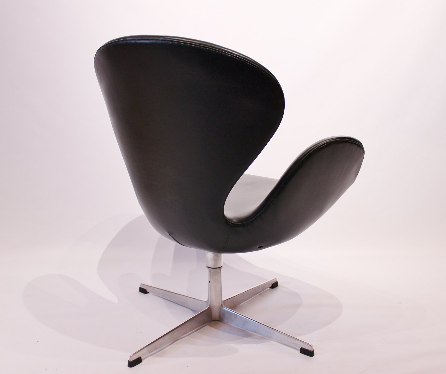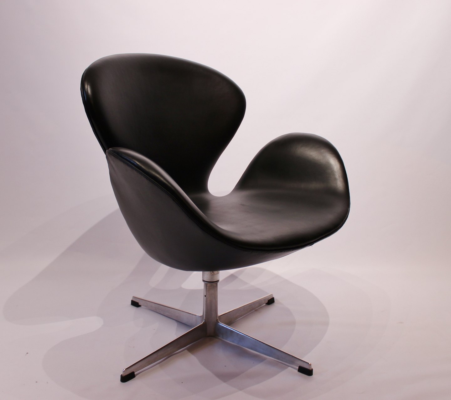 Swan chair, model 3320, designed by Arne Jacobsen in 1958 and manufactured by Fritz Hansen in the 1950s. The chair is with original upholstery in black leather.