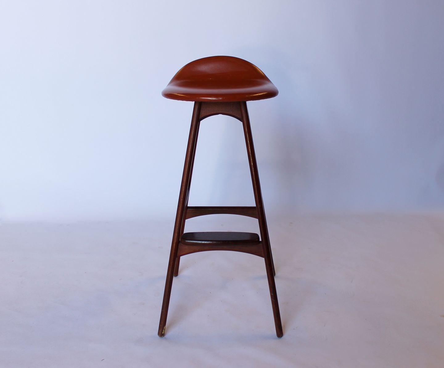 SolgtBarstol, model OD61, designet af Erik Buch og fremstillet af Odense Møbelfabrik. Stolen er af palisander og elegance læder sæder.