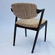 SoldA set of 6 dining chairs, model 42, designed by Kai Kristiansen and manufactured by Schou Andersen in the 1960s. The chairs are of dark oak and upholstered in light wool fabric.