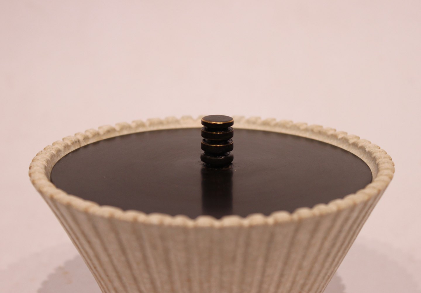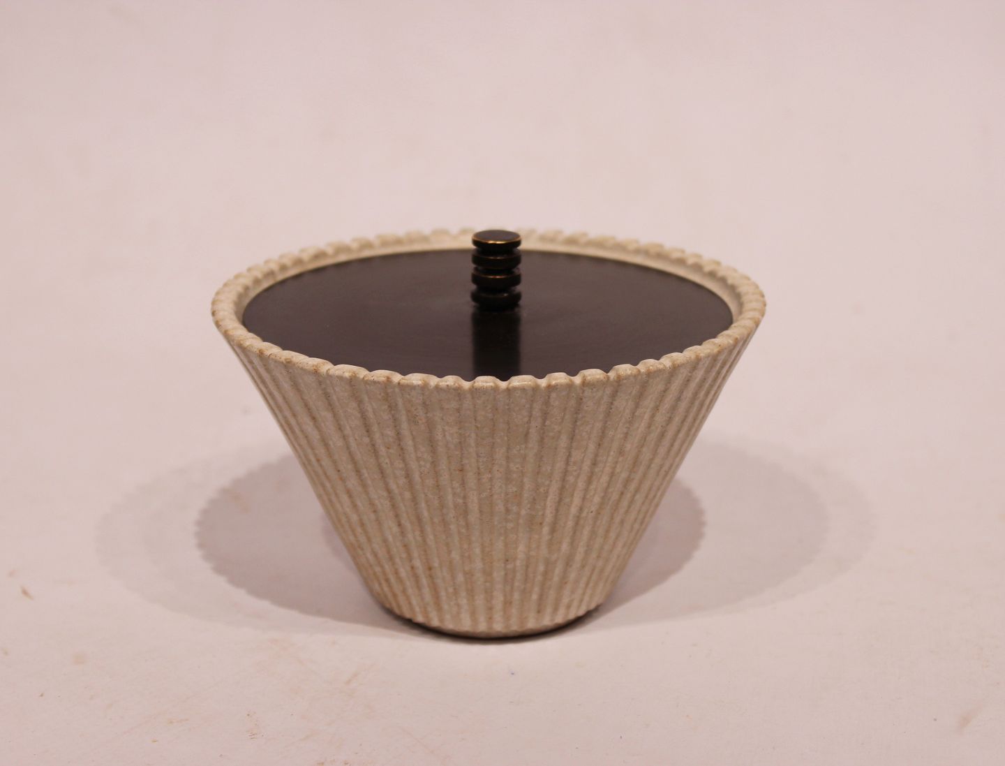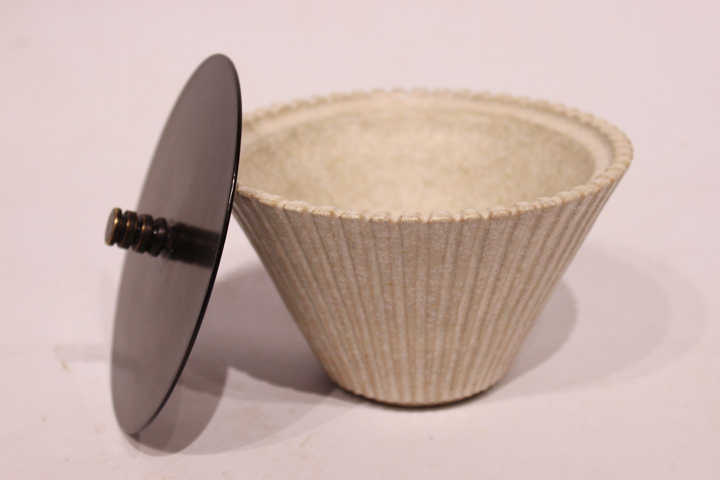 Keramik skål med låg af bronze af Arne Bang, nr.: 119, fra 1930erne.