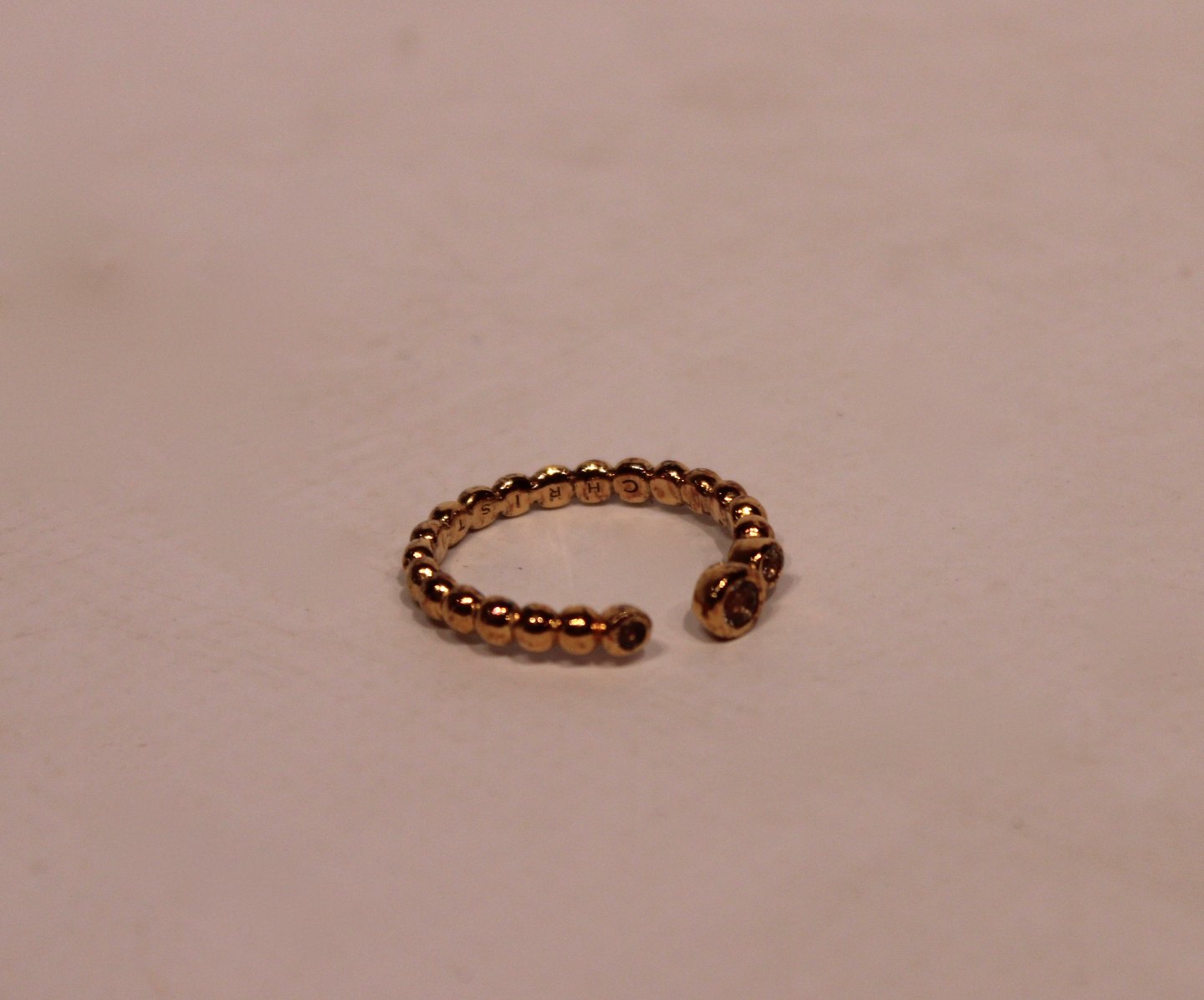 Gilded 925 sterling silver ring with clear stone and opening by Christina Jewelry.
