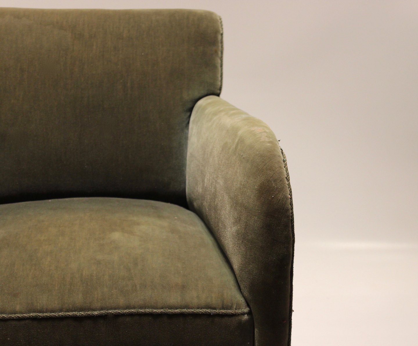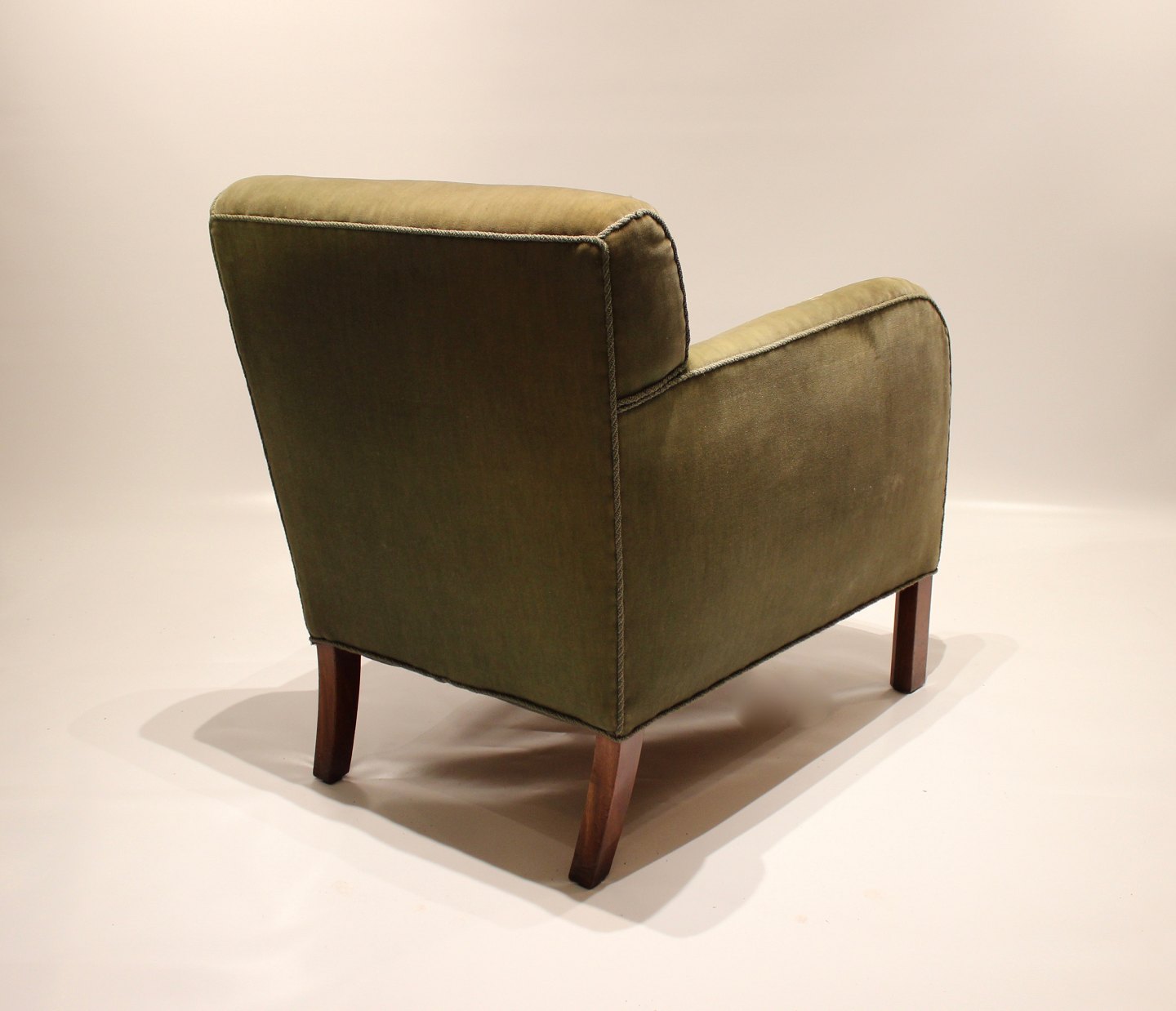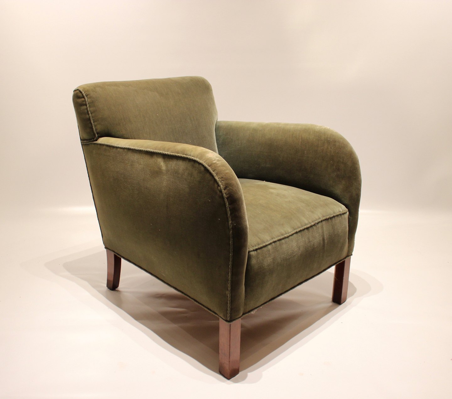 Lænestol polstret i grønt stof af dansk design fra 1960erne.