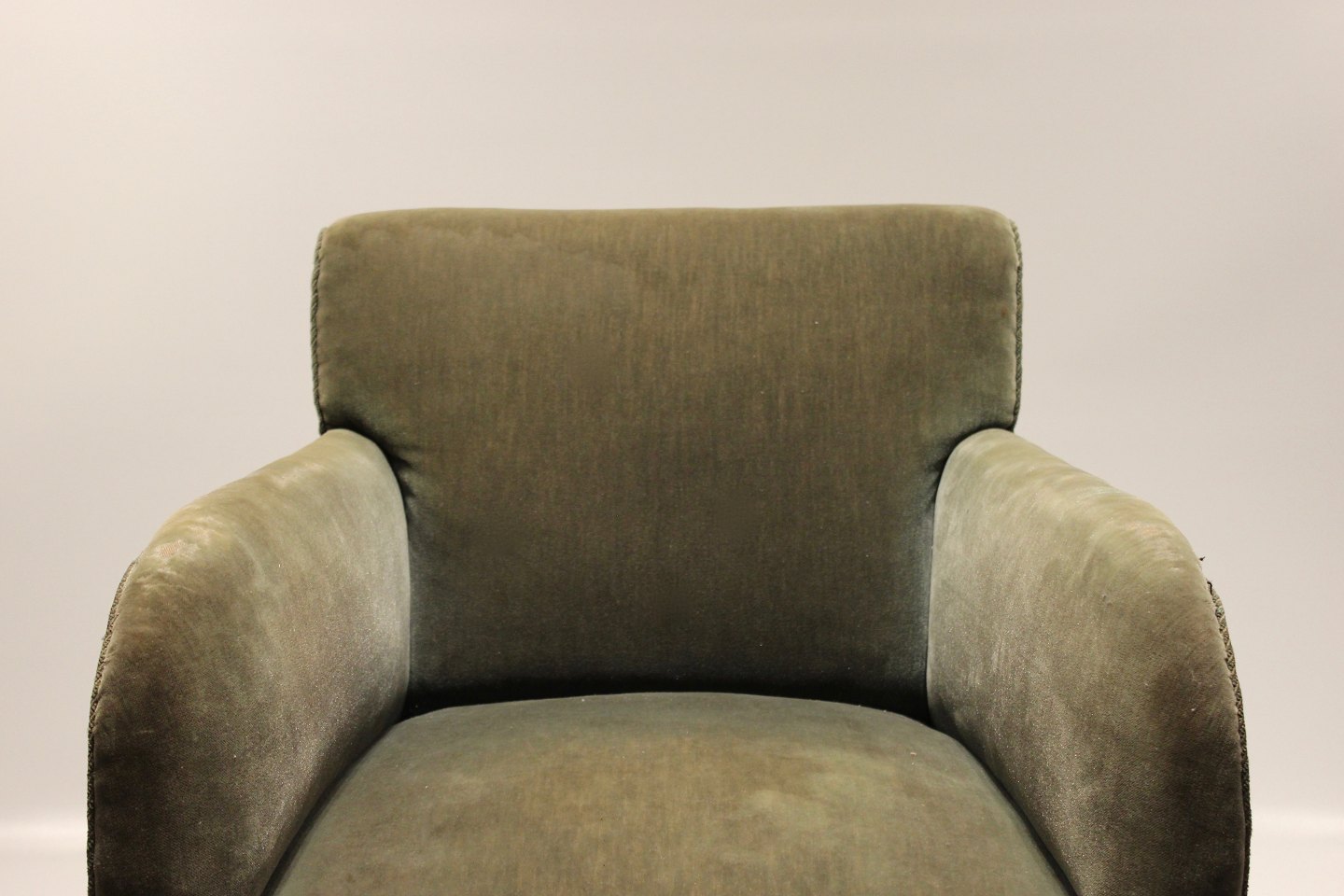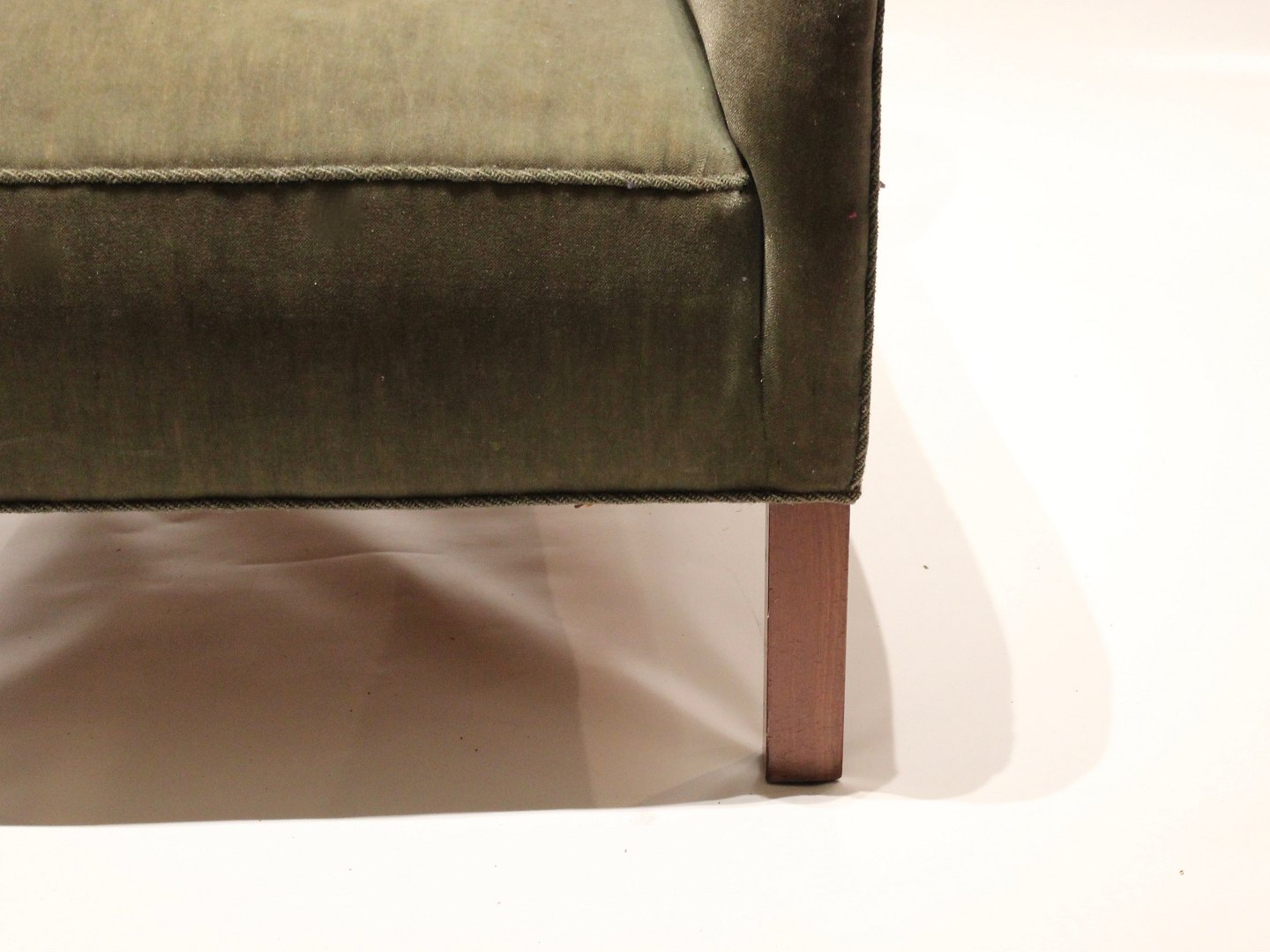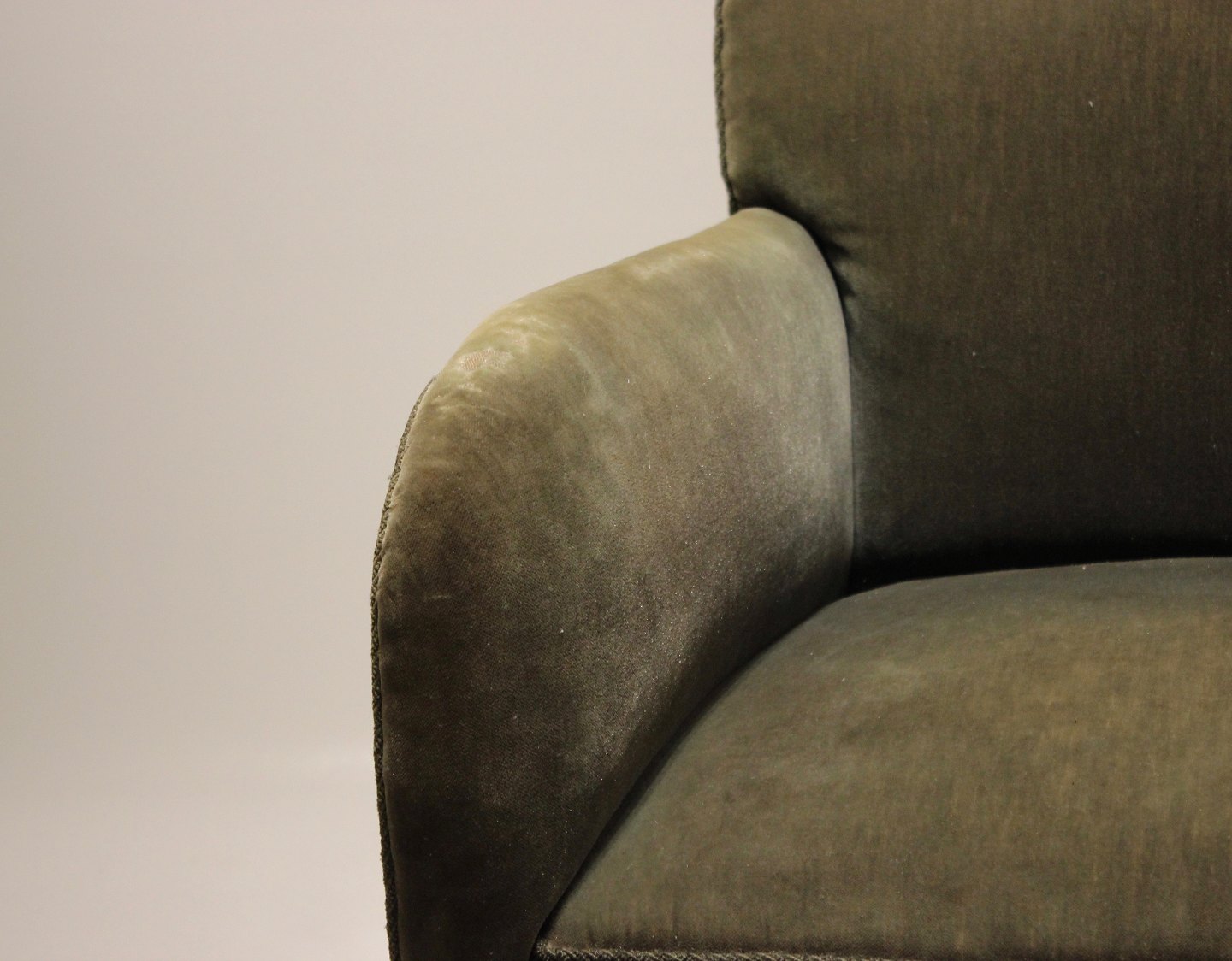 Lænestol polstret i grønt stof af dansk design fra 1960erne.