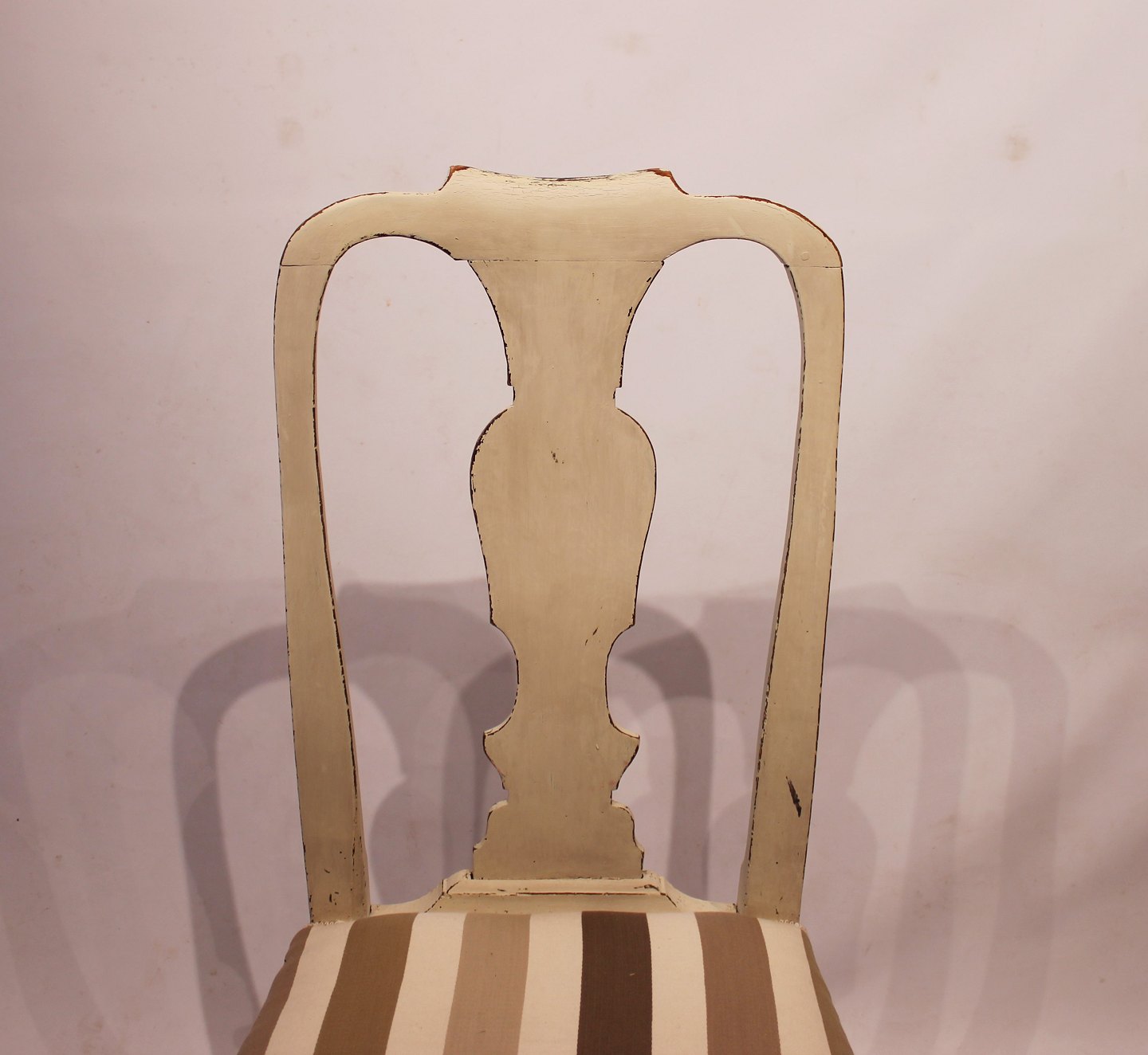 White painted Rococo dining chair with striped upholstery, from the 1760s. The chair is in great vintage condition.