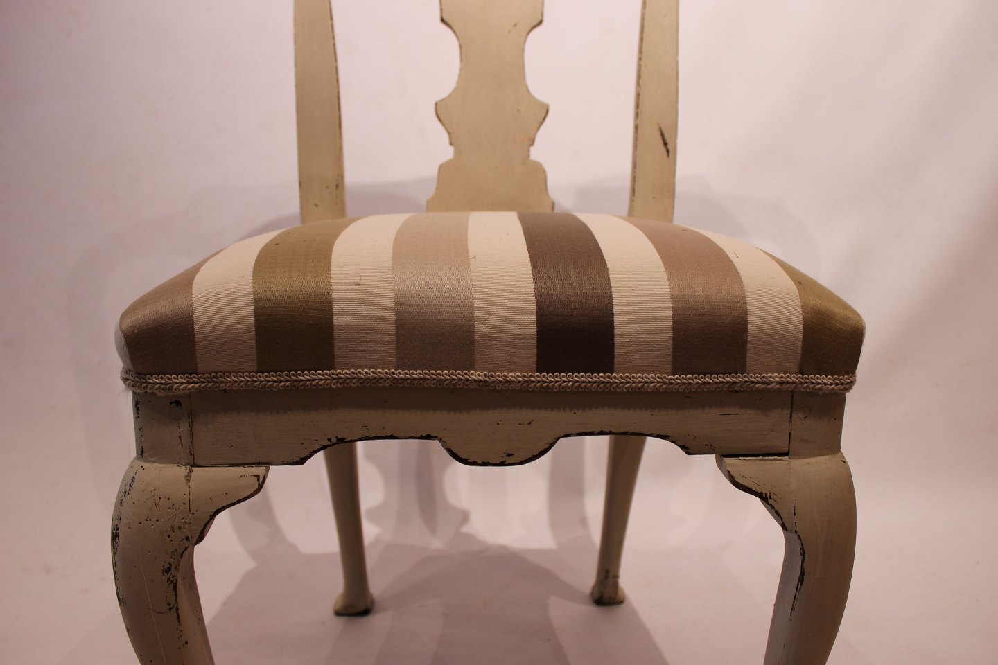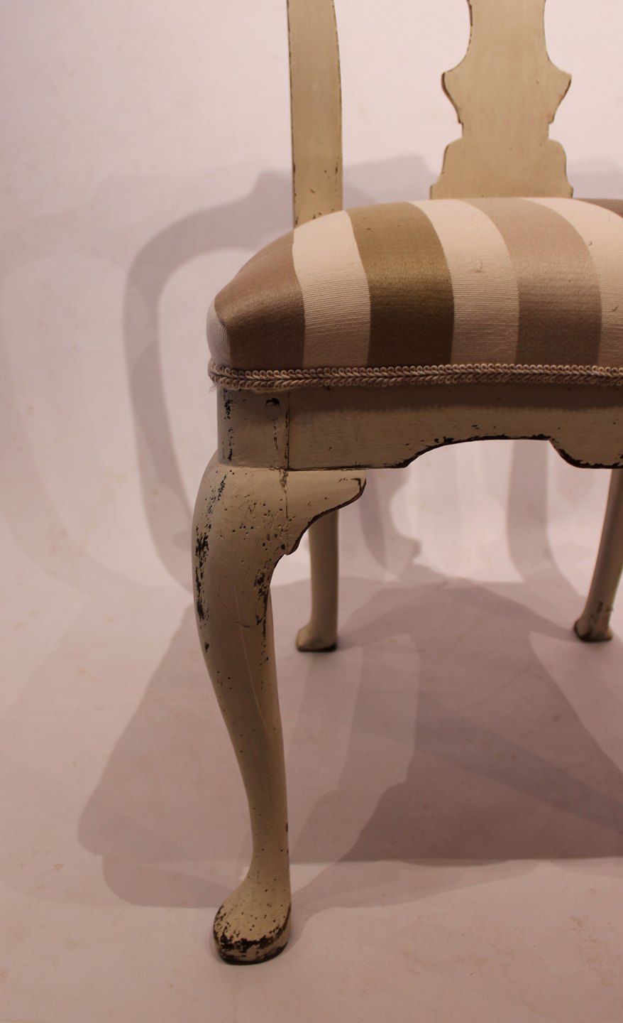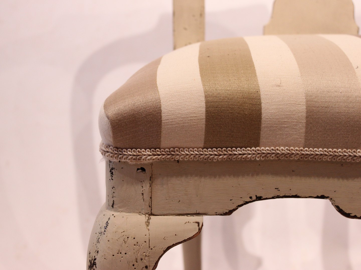White painted Rococo dining chair with striped upholstery, from the 1760s.
