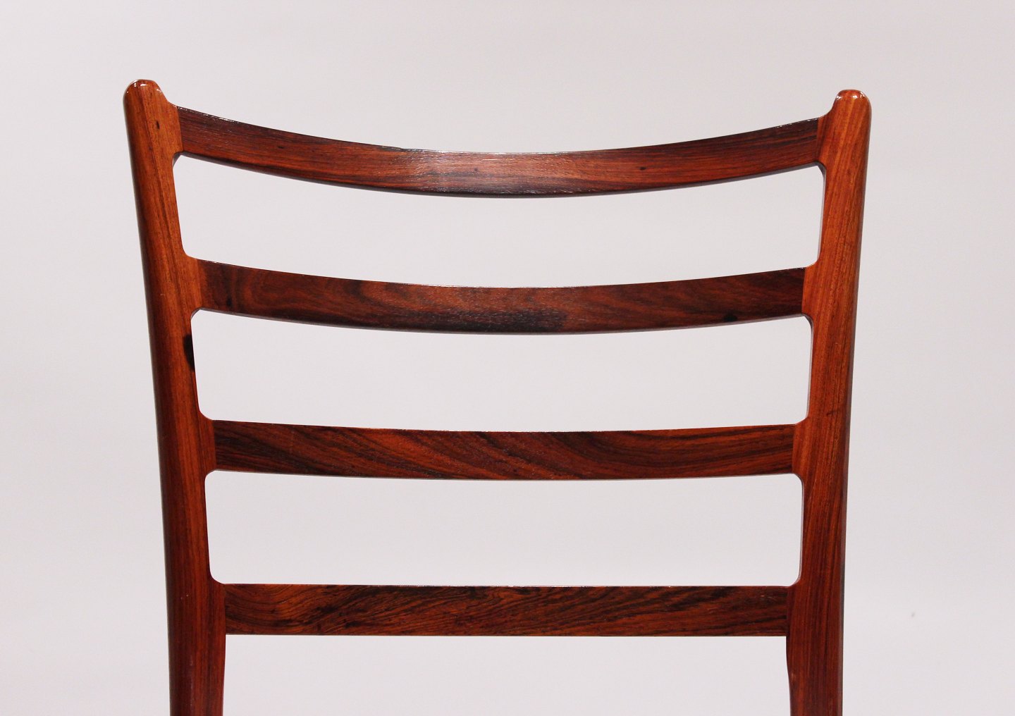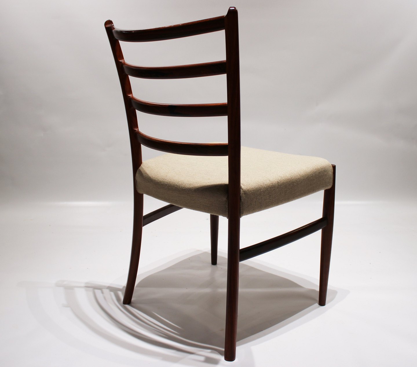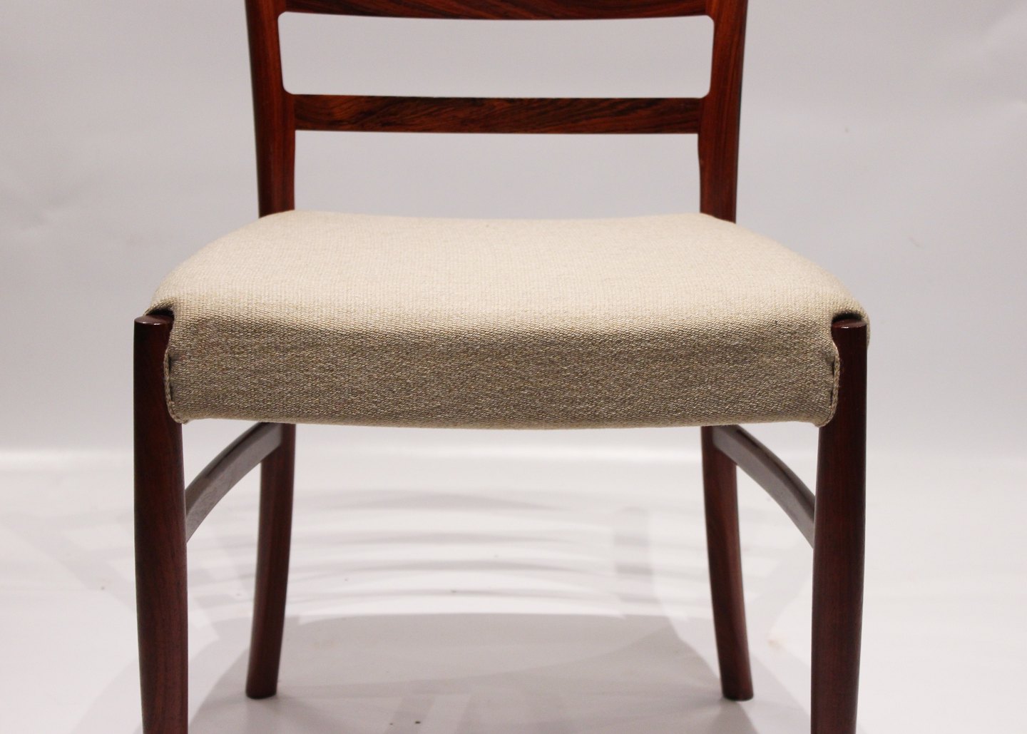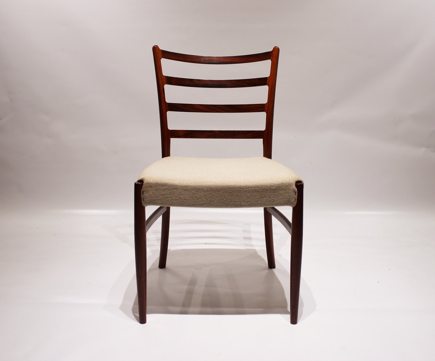 SoldSet of 6 dining chairs of rosewood and upholstered with light wool fabric designed by N.O. Møller. The chairs are from the 1960s abd in great vintage condition.