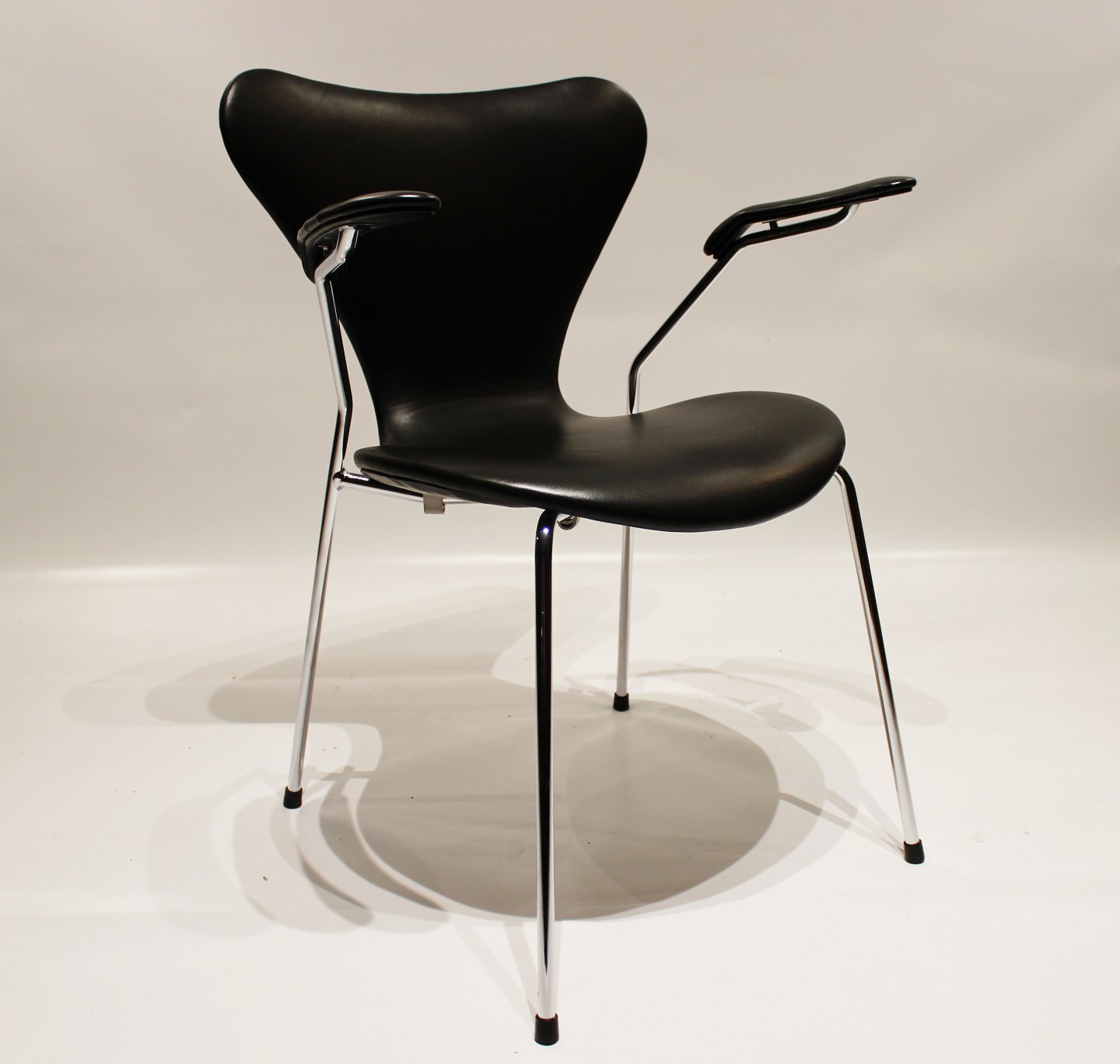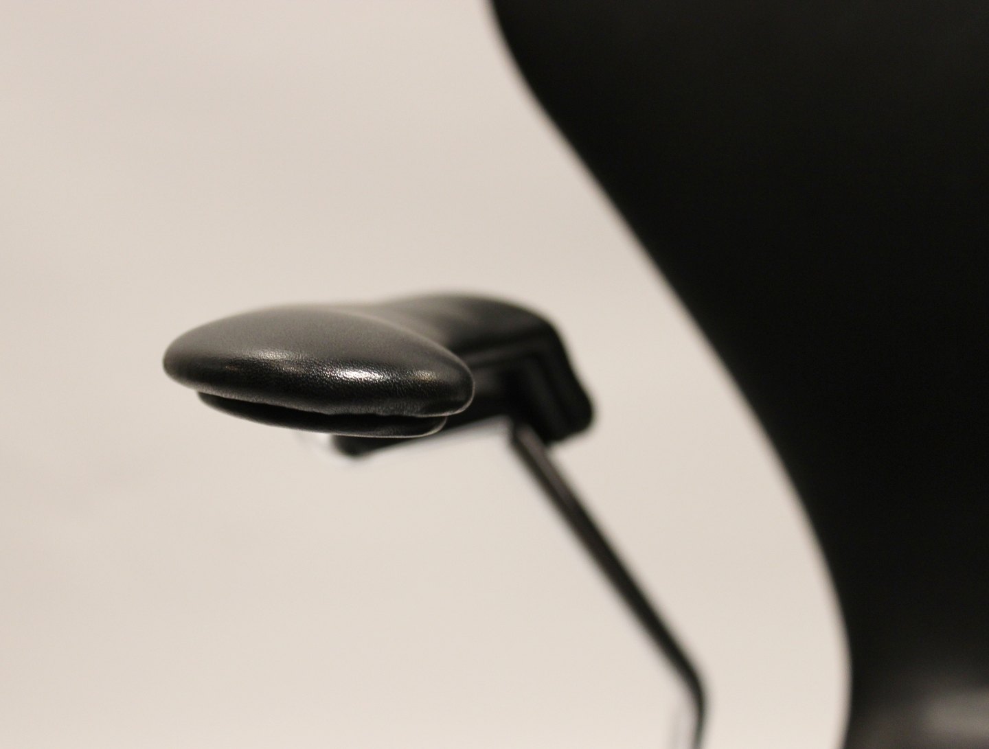 Arne Jacobsens Syver-stol er et mesterværk i sig selv, kendetegnet ved sit enkle og strømlinede design, der alligevel formår at være yderst behageligt og ergonomisk korrekt. Stolens armlæn tilføjer ekstra komfort og funktionalitet, hvilket gør den velegnet til længere perioder med brug, både ved spisebordet og som en kontorstol.