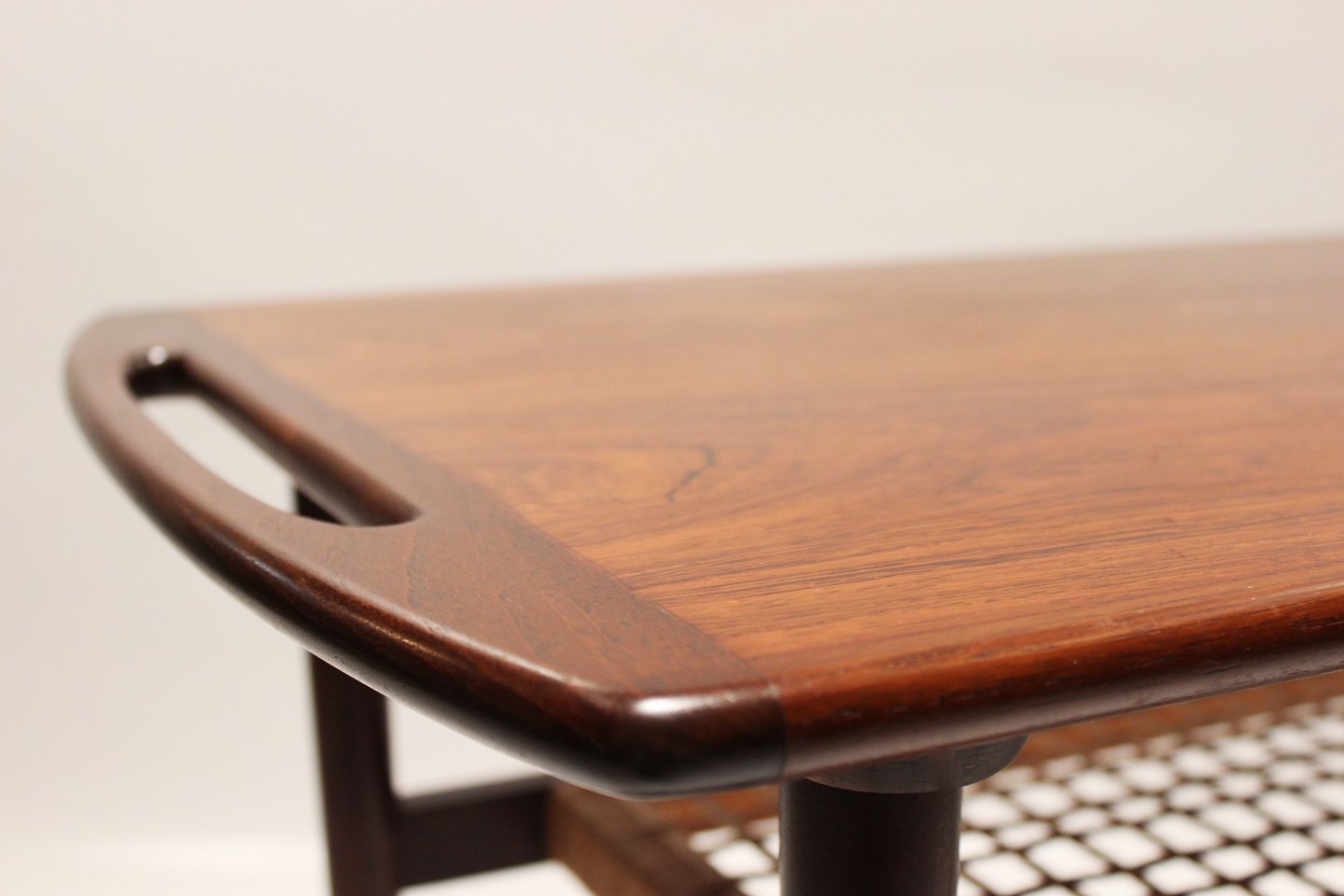 SolgtRullebord i palisander med flethylde af dansk design fra 1960erne. Bordet er fremstillet af FK og i flot brugt stand.