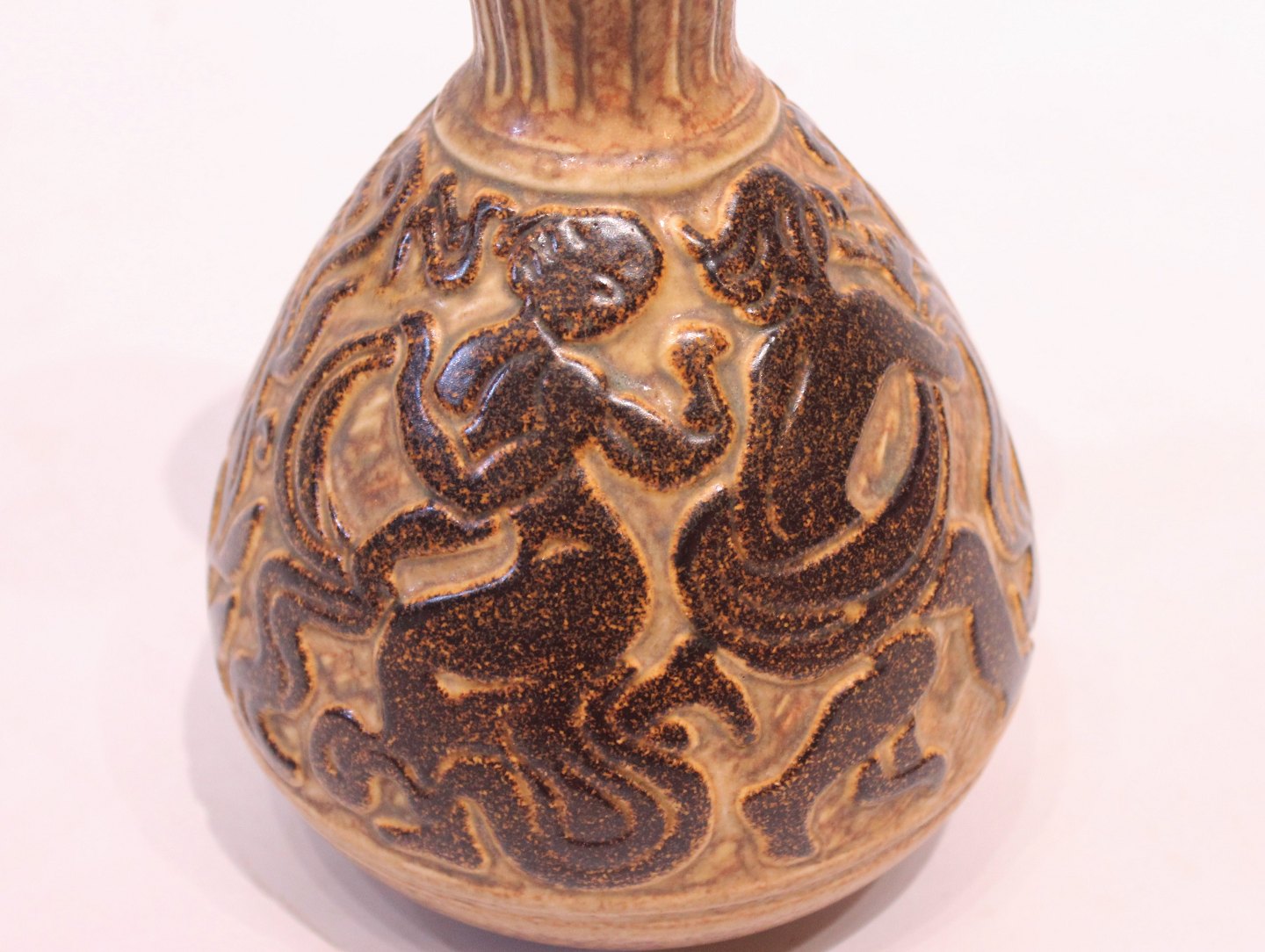 Keramik vase i brune farver nummeret 2047 af Michael Andersen og Søn. Vasen er i flot brugt stand.