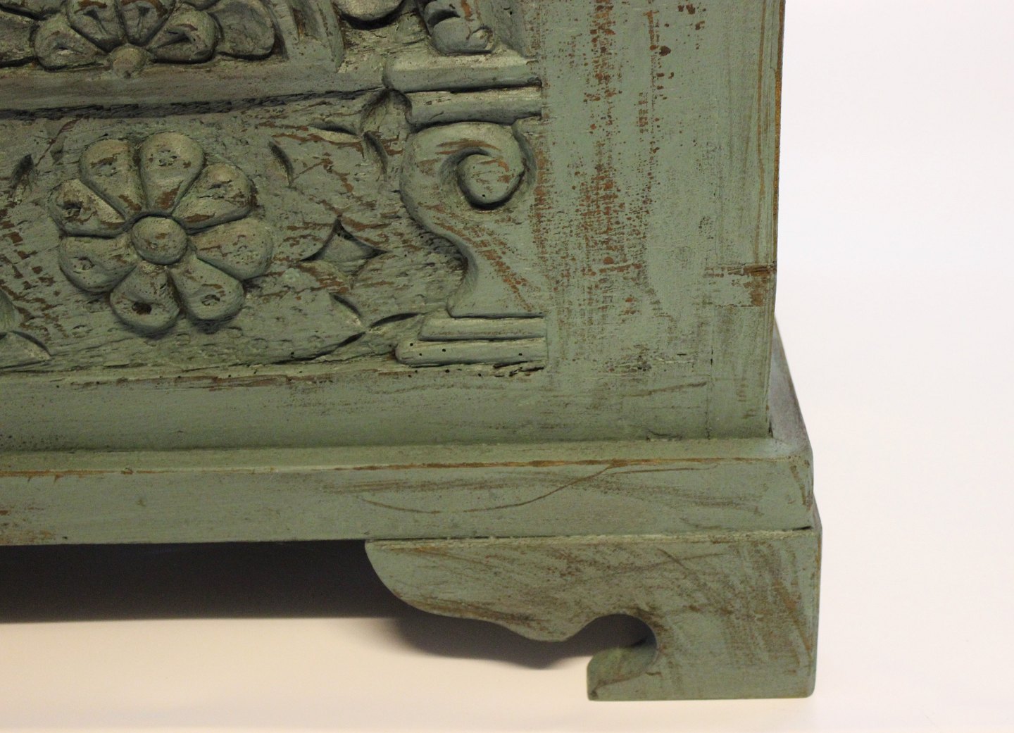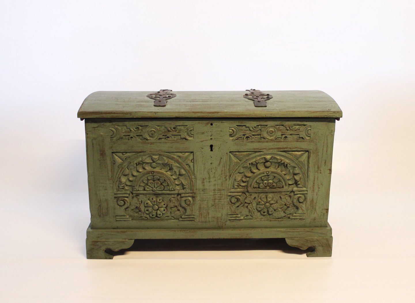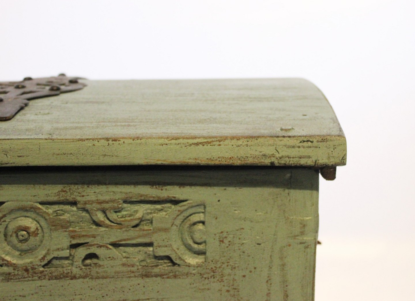 SoldAntique chest with carvings and original paint. The chest is in great vintage condition and from around the year 1740.