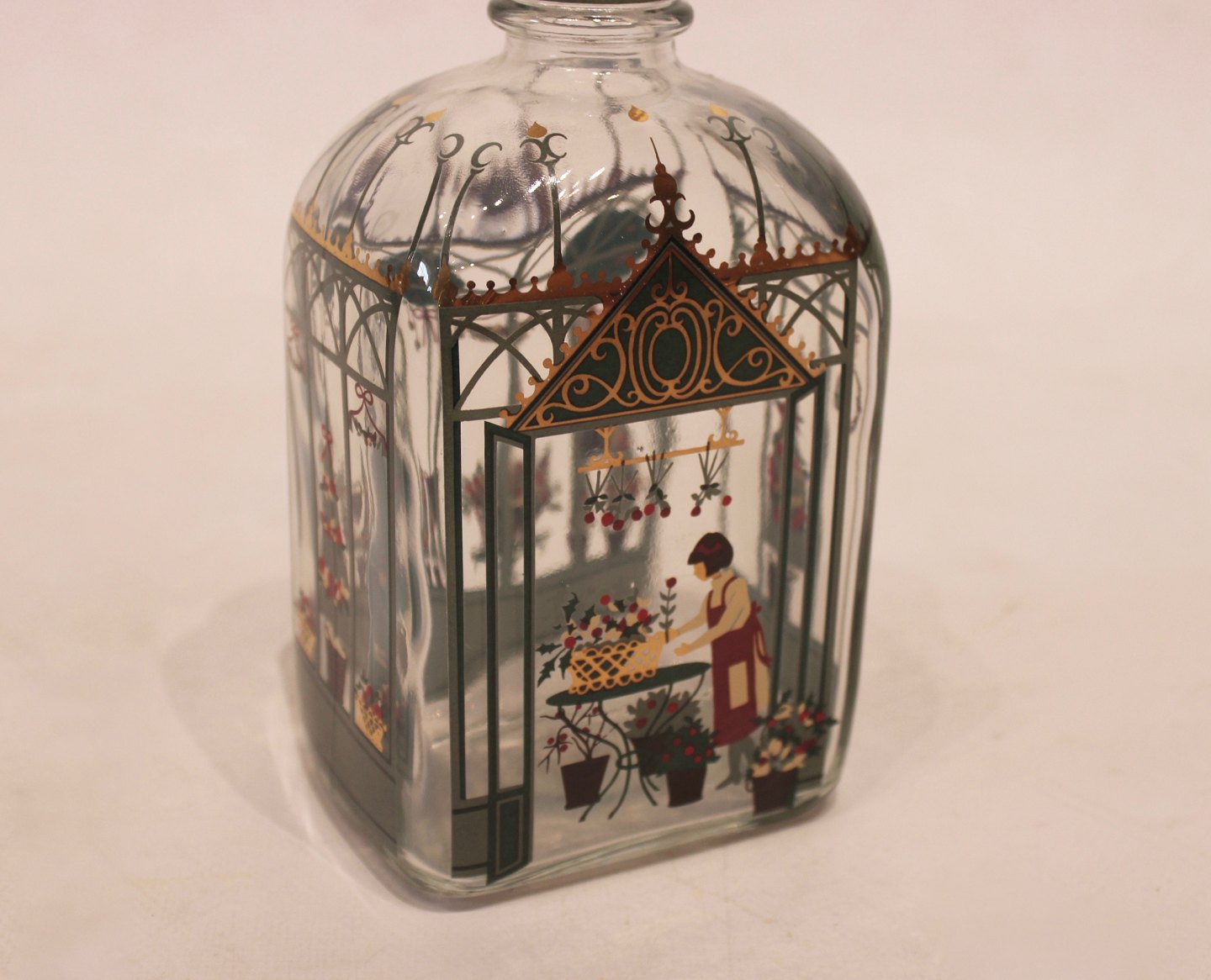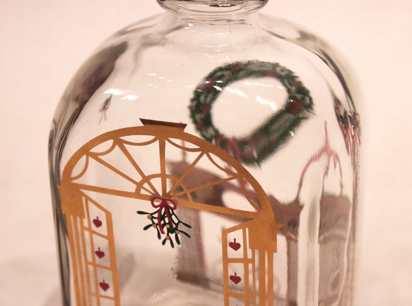 A pair of christmas decanters, beautifully decorated , designed by Jette Frölich for Holmegaard in 1981.