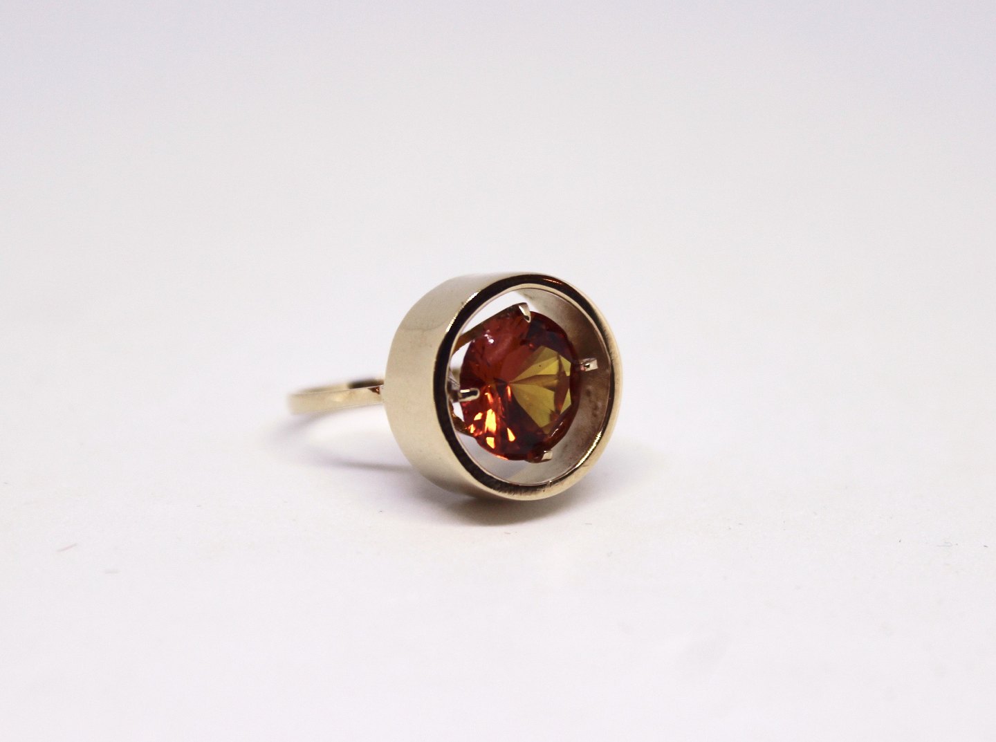 Ring af 14 kt. guld dekoreret med rav sten.