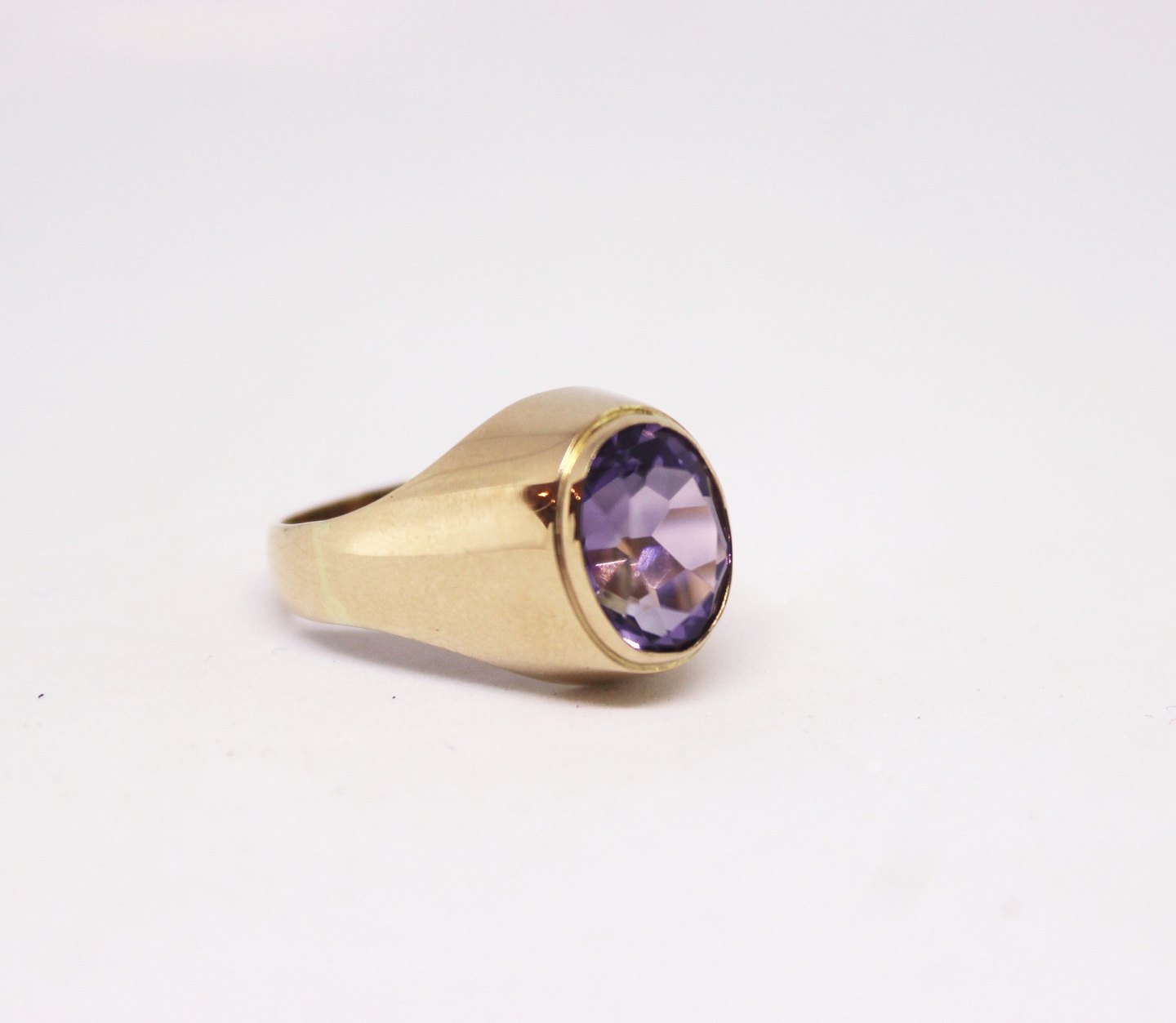 Ring af 14 kt. guld dekoreret med ametyst og stemplet VASA.